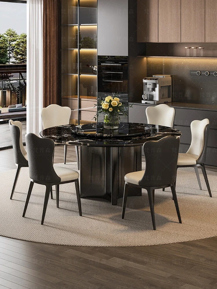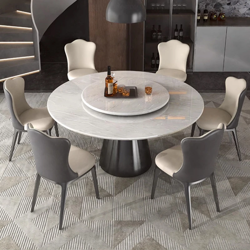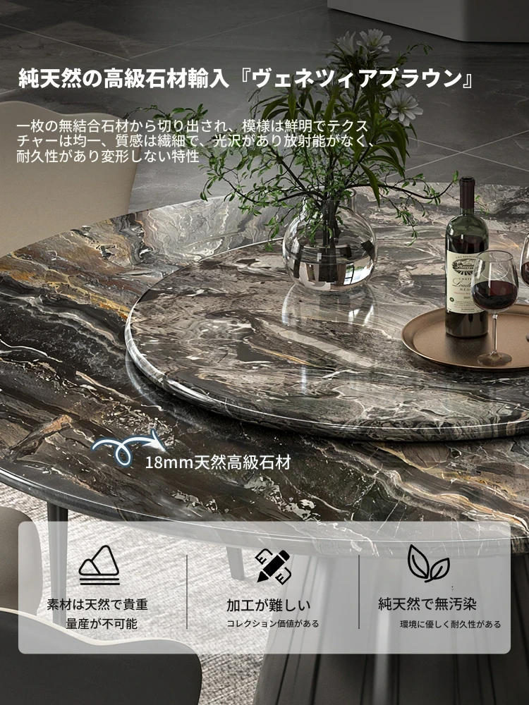 高級感溢れる大理石円形ダイニングテーブルセット - シンプルでモダンなデザイン、回転プレート付きで使い勝手抜群!家庭用に最適なラグジュアリーな食卓をお楽しみください。