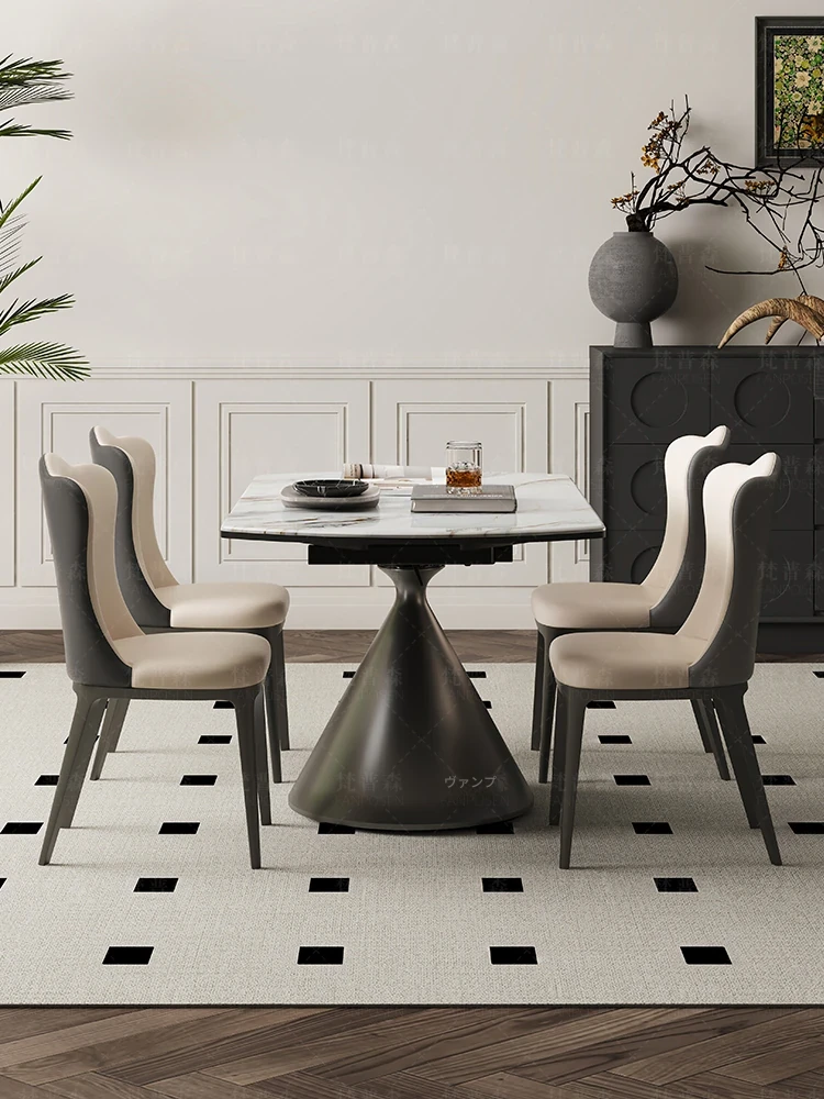 現代的な軽奢感が漂う大理石長方形ダイニングテーブル - 奥利奥グレーのスタイリッシュなデザイン、家庭用に最適なテーブルとチェアのコンビネーションで、優雅な食事空間を演出します。