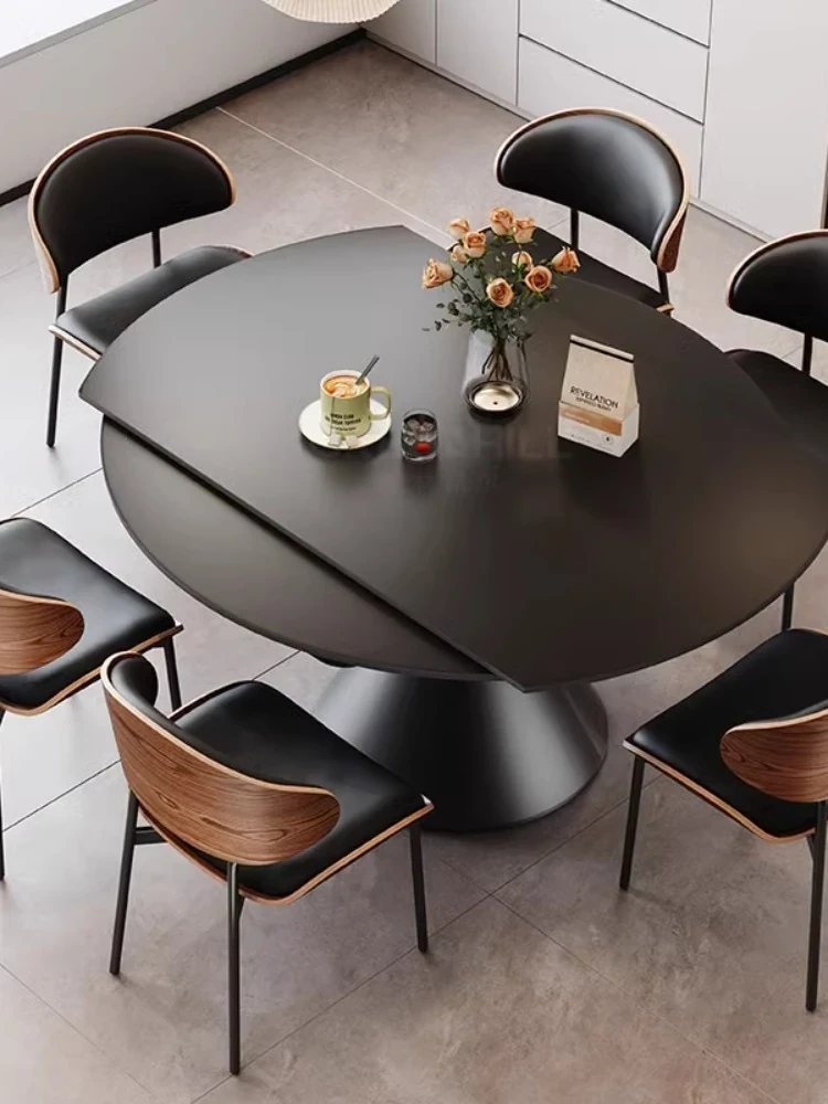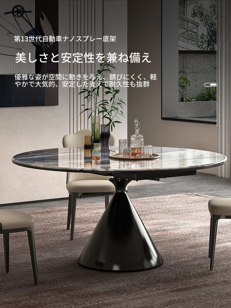 回転式伸縮テーブル ブラックストーン 円形テーブル イタリアンミニマリズム レトロ ラグジュアリー 小型住宅向け 2025年新作!おしゃれで機能的、家族や友人との大切なひと時を彩ります。