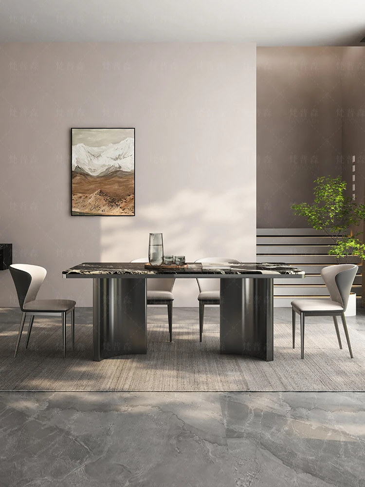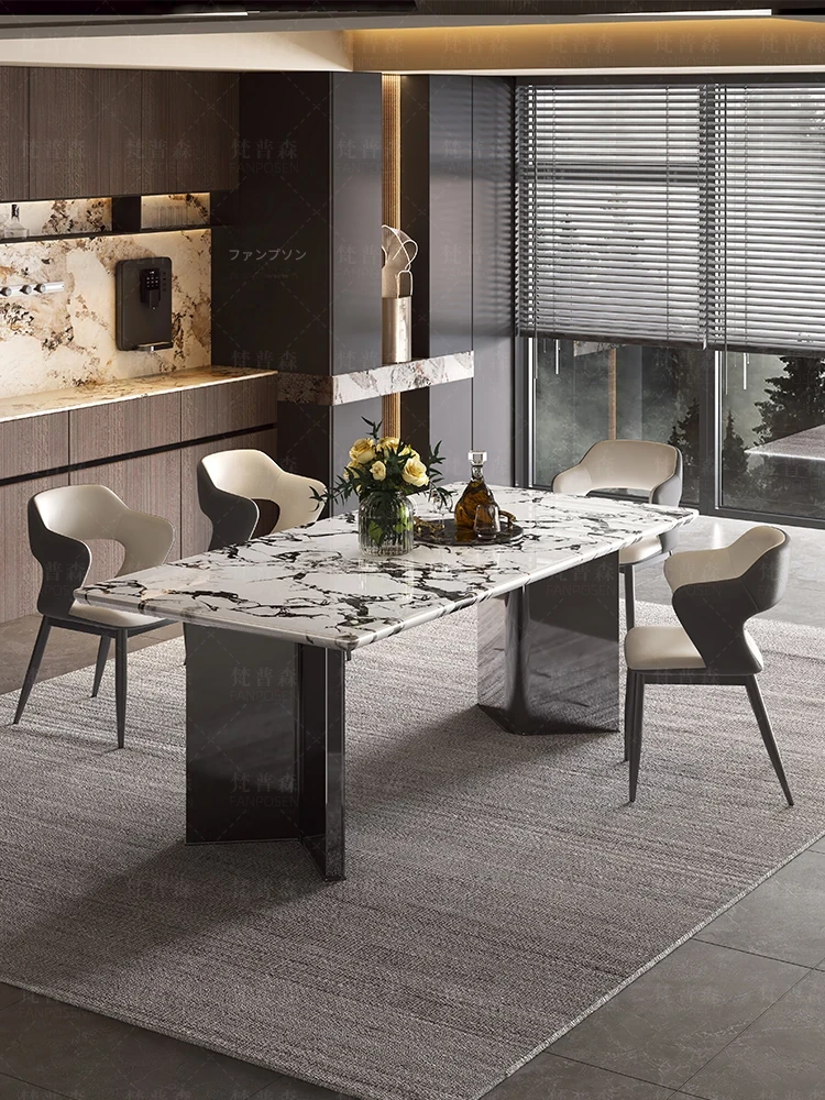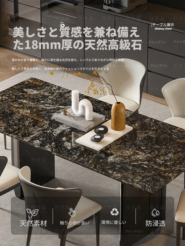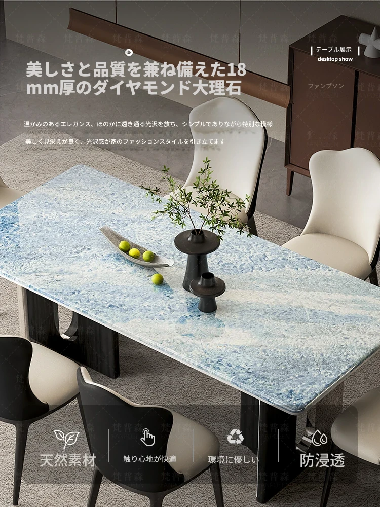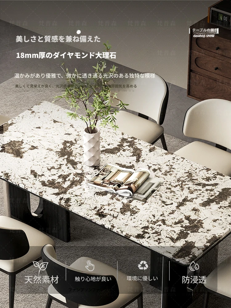 カリアイスジュエル天然ラグジュアリー石製ダイニングテーブル - ヴァンプソン大理石のイタリアンスタイル、洗練された高級感あふれる長方形テーブル&チェアセット
