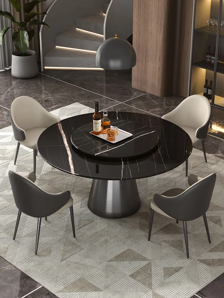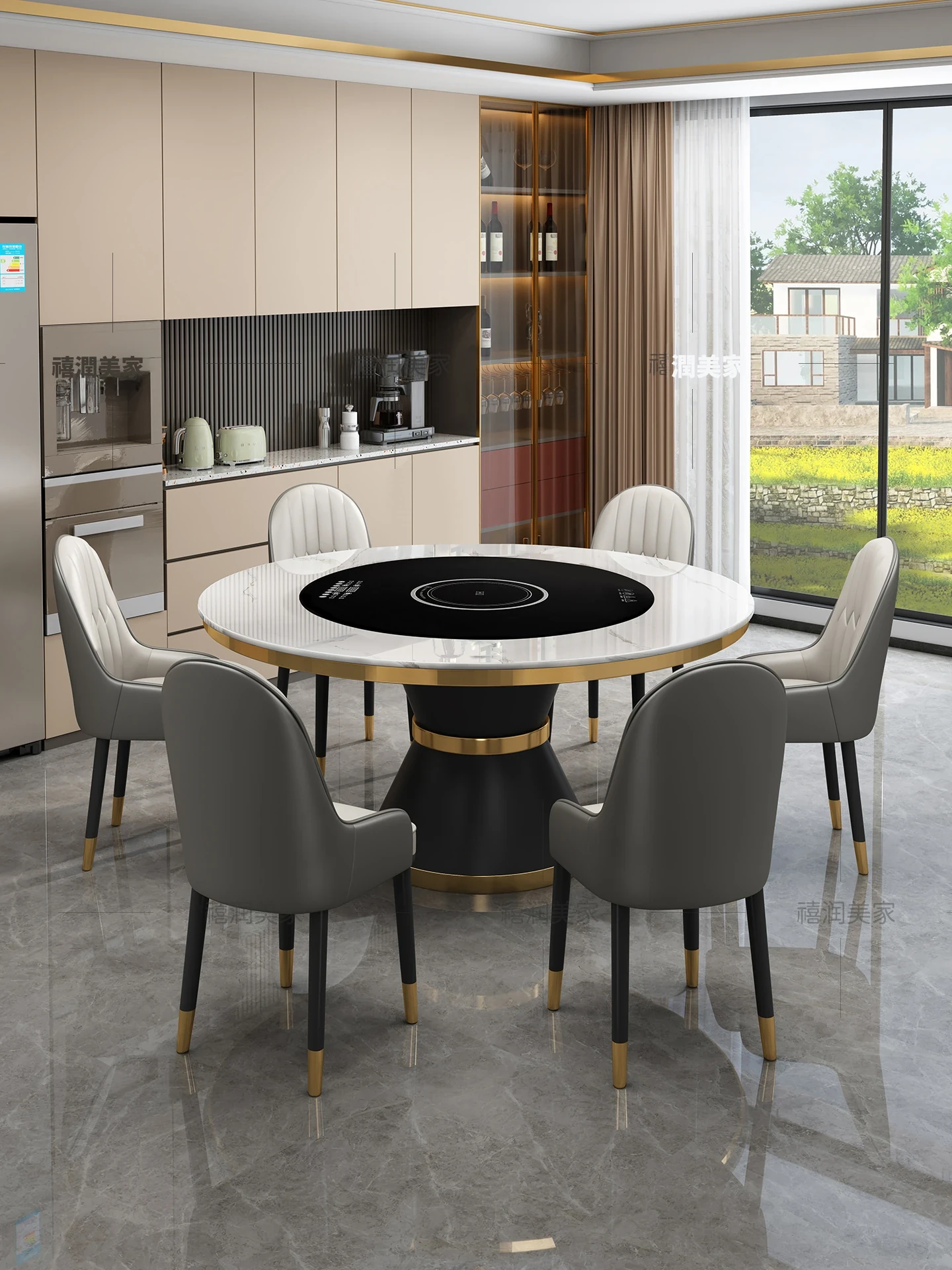ラグジュアリーな岩板製ダイニングテーブル&チェアセット!内蔵の電動回転鍋・IHクッカー付きで、シンプルでスタイリッシュな家用・ホテル用の円形ダイニングテーブル。食事をもっと楽しく、便利に!