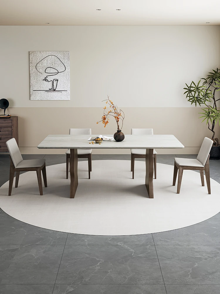 イタリアン大理石のミニマルデザイン、軽やかで高級感溢れる岩板ダイニングテーブル&チェアセット。2025年新作、小さなスペースにも最適なシンプルで洗練されたスタイル。