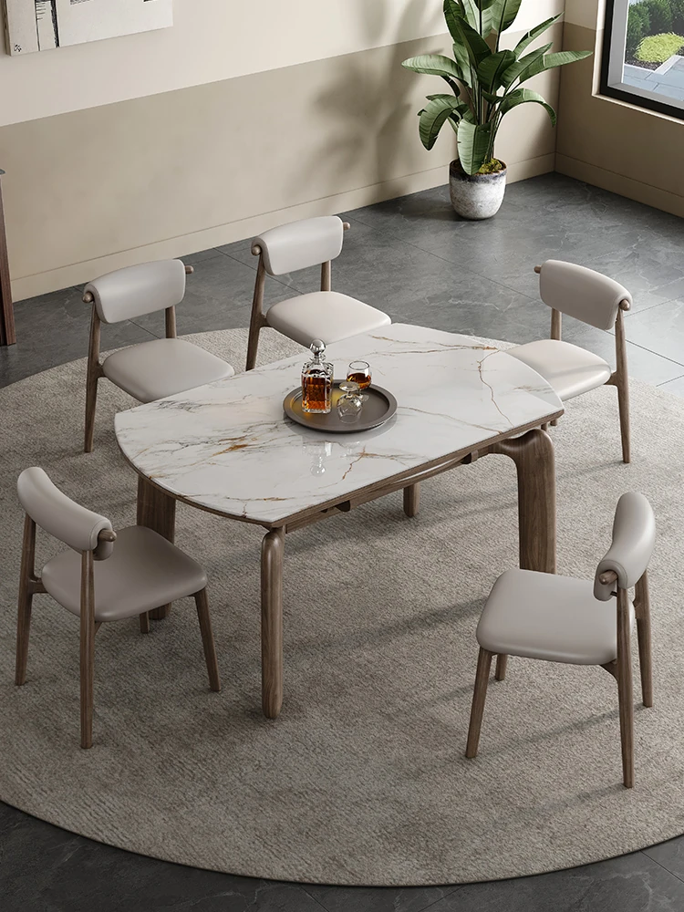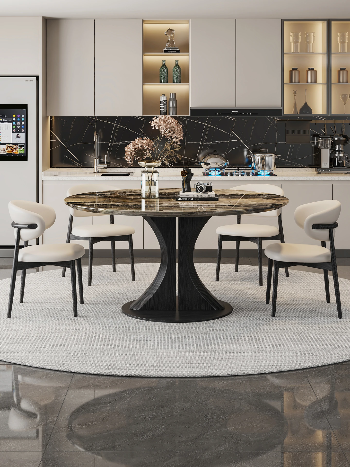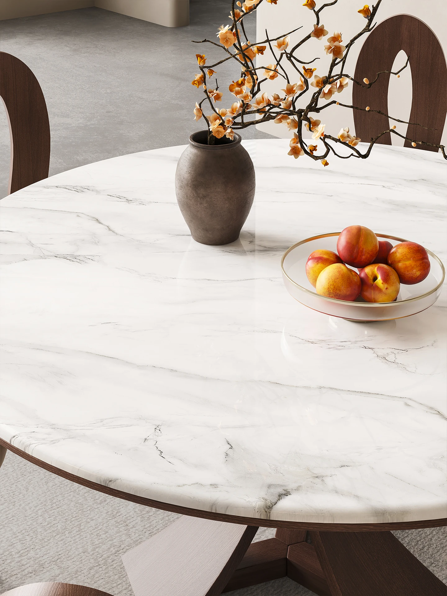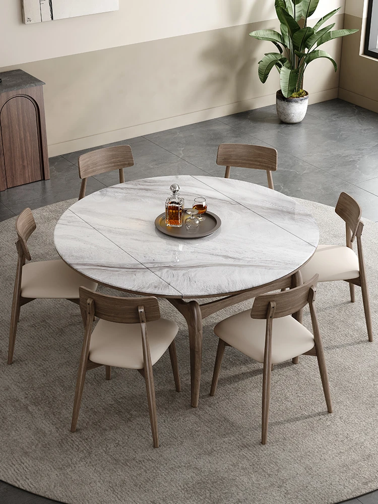 ヴァンプソンの天然マイクロクリスタルストーン製の伸縮式無垢材ダイニングテーブル。大理石仕上げのイタリアン軽奢スタイル、シンプルで洗練された円形の食卓。あなたの食事空間をより魅力的に演出します!