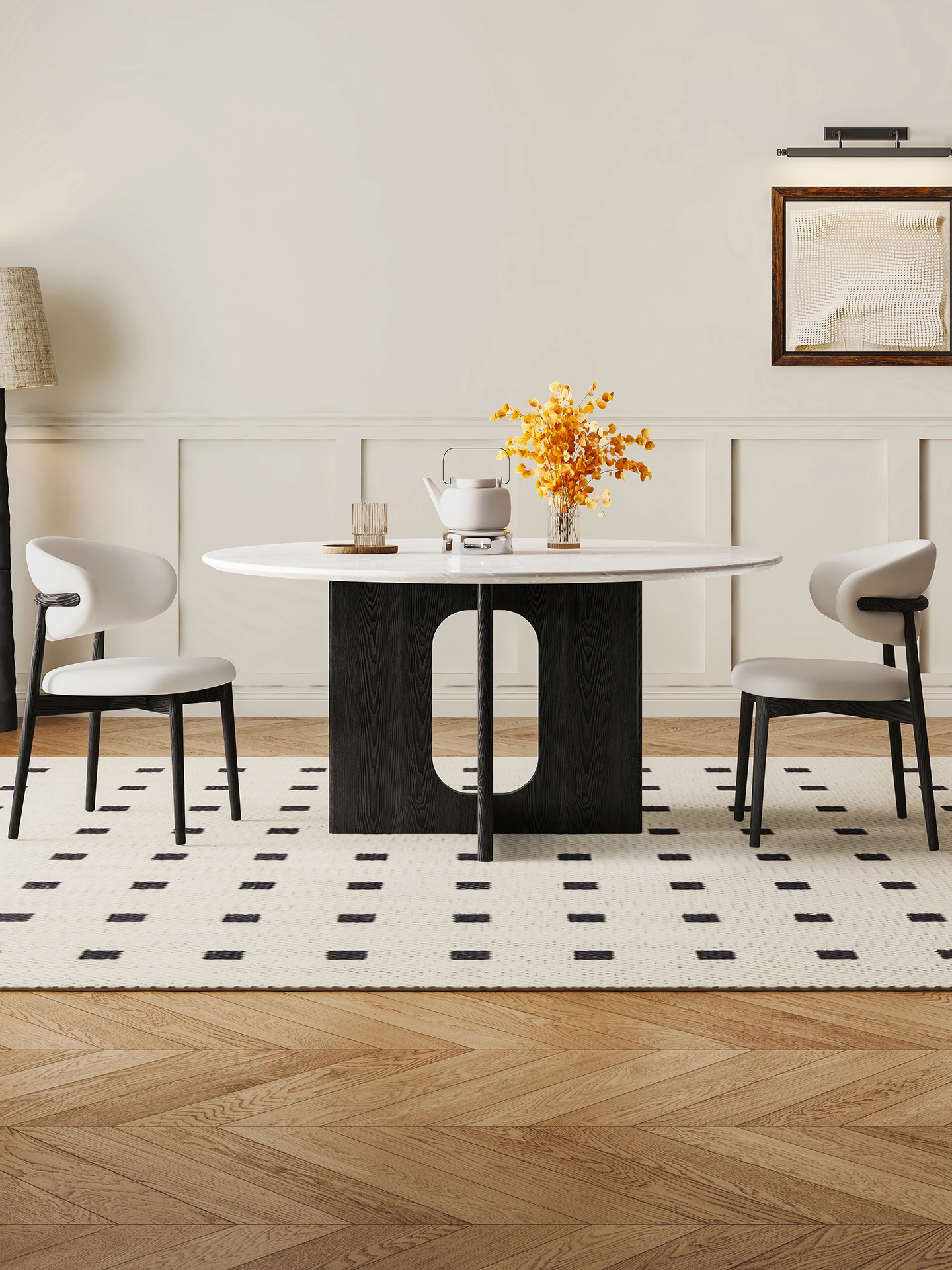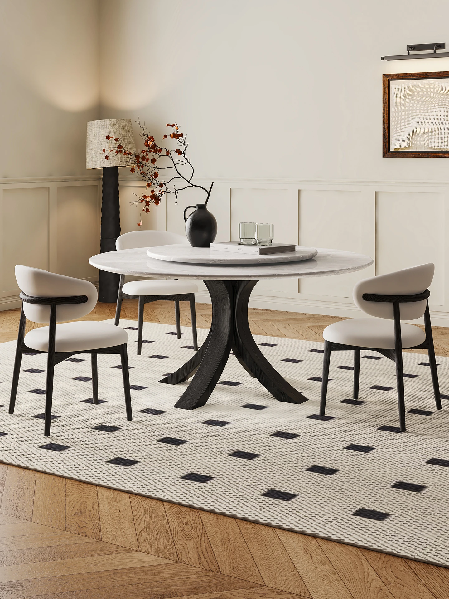 高級感溢れる天然大理石の実木ダイニングテーブル - 中古風デザイン、白アッシュ材使用、コンパクトな円形で小さなお部屋にもぴったりな逸品!家族や友人と共に特別なひとときをお楽しみください。