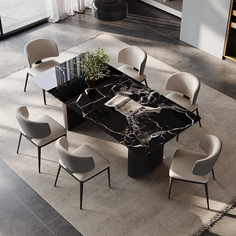 イタリアンラグジュアリー天然大理石ダイニングテーブル ブラックローズの高級感 憧れのヴィラにぴったりな長方形デザイン 家庭用にも最適!