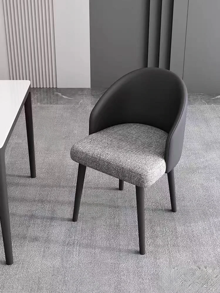 北欧スタイルのモダンなダイニングチェア - シンプルで洗練されたデザイン、ファッション性抜群!クリエイティブなレザーとファブリックのコンビネーション、ホテルや洽談に最適な背もたれ付きチェア。快適さとスタイルを兼ね備えた一脚!