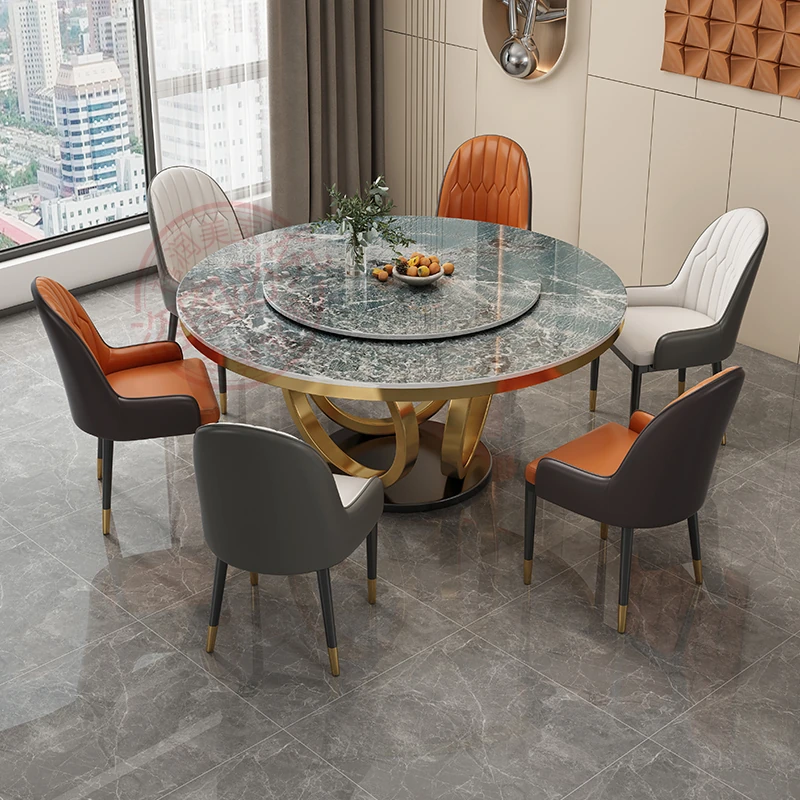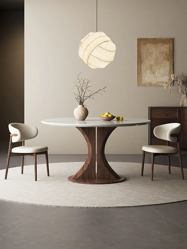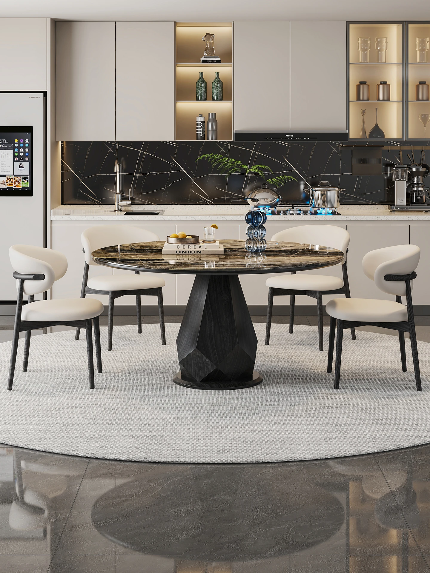 Modern Minimalist Light Luxury Round Marble Dining Table and Chair Set with Induction Cooker - Perfect for Small to Medium Homes