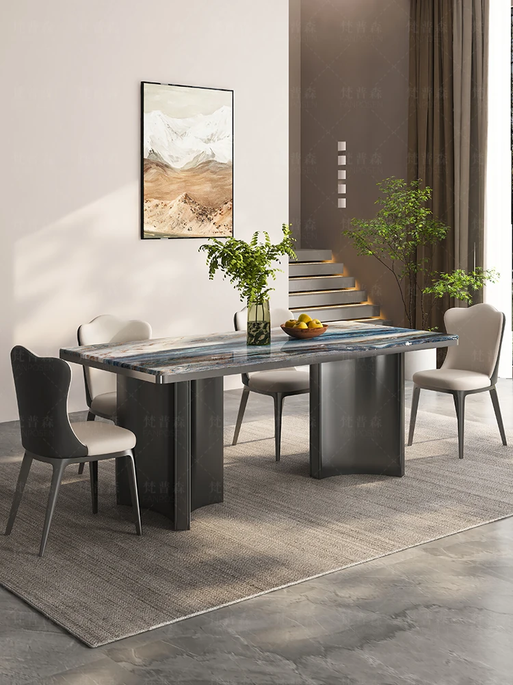 Elegant Natural Pandora Marble Rectangular Dining Table - Luxurious High-End Table for Villas and Spacious Homes, Perfect for Upscale Dining Experiences