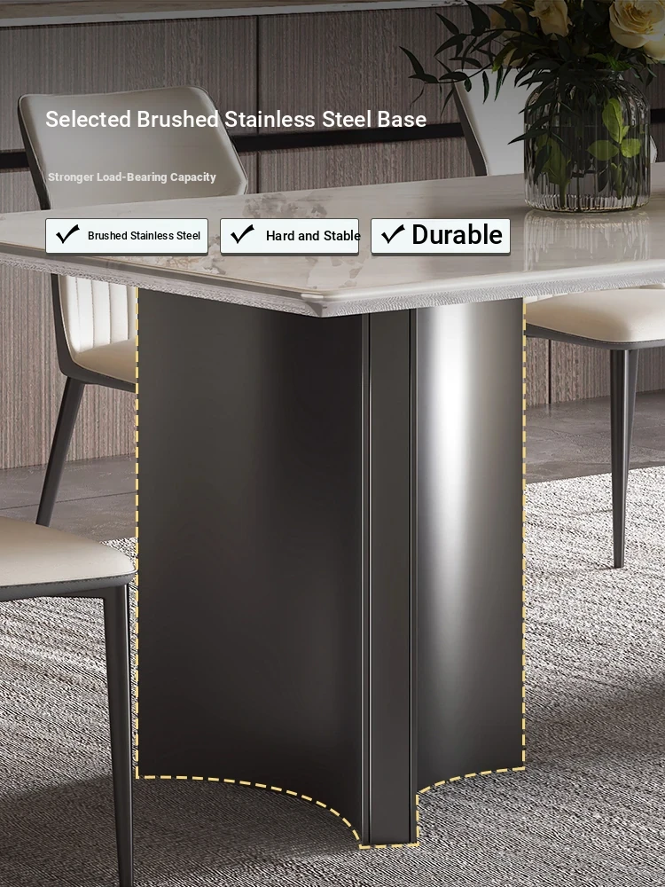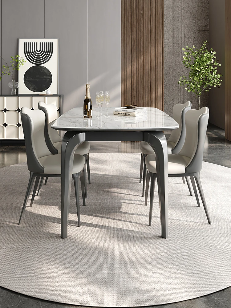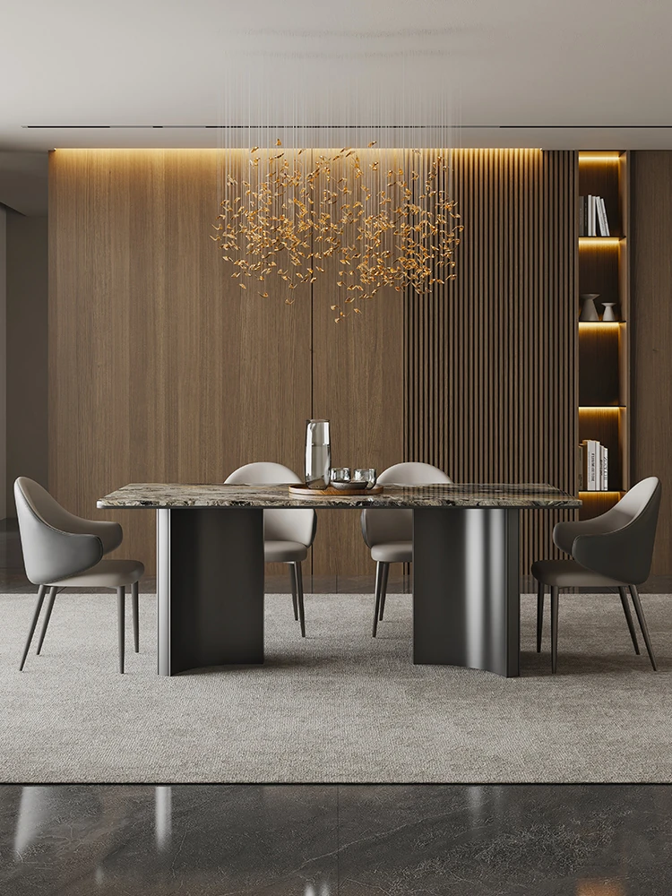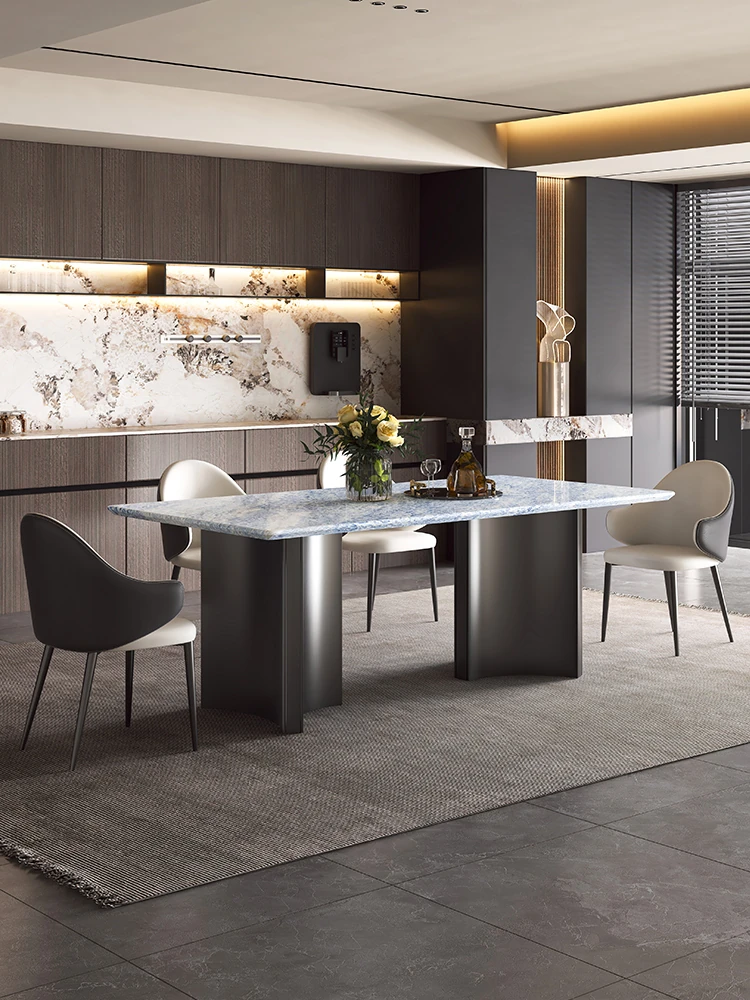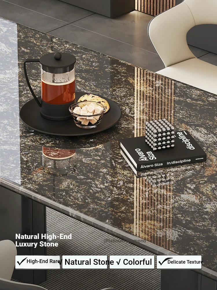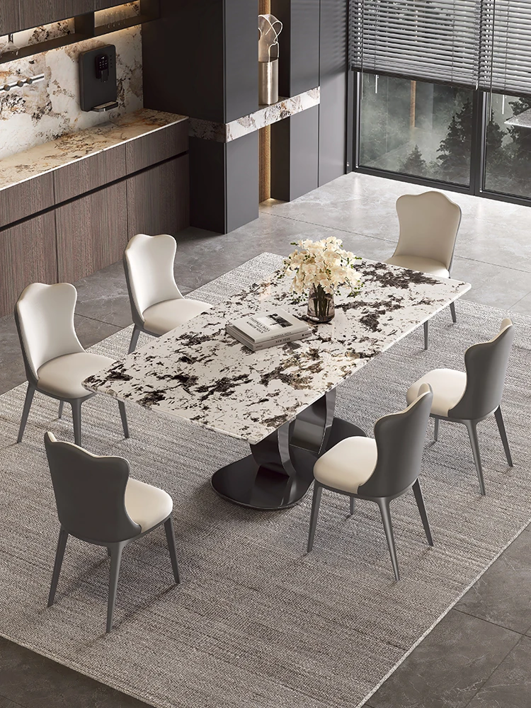 2024 New Luxury Natural Stone Platinum Diamond Marble Rectangular Dining Table Set - Elegant High-End Rock Plate Dining Experience