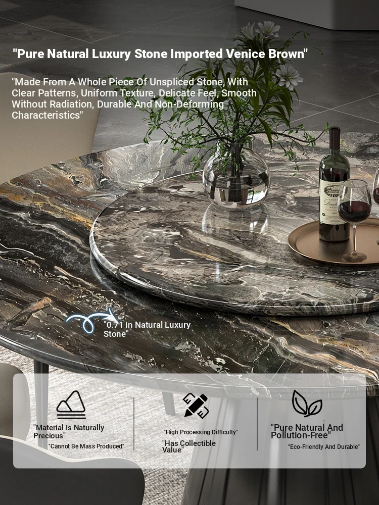 Vansson Natural Oleo Grey Luxury Marble Dining Table - Elegant Italian-Style Round Table for Home with High-End Dining Chairs