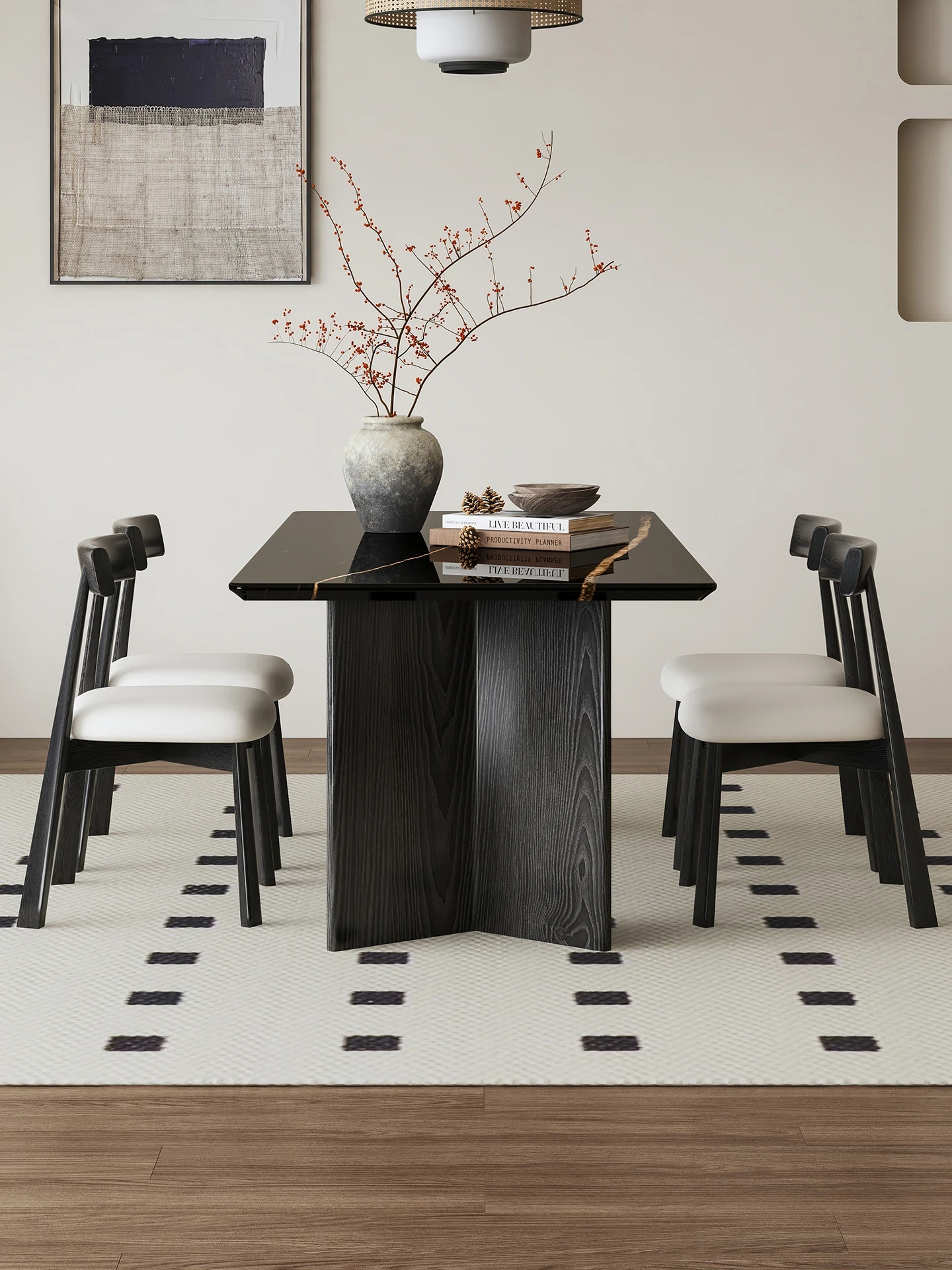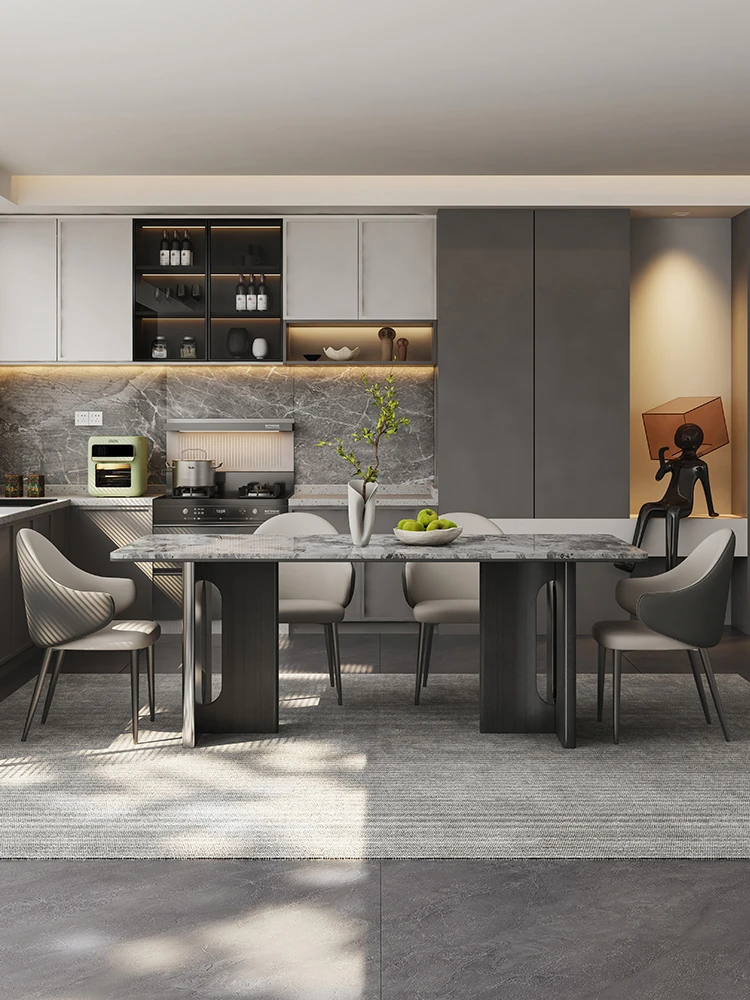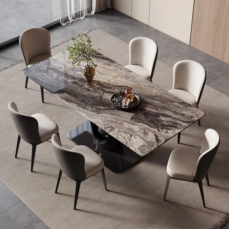Modern Luxury Rectangular Marble Dining Table Set in Oreo Grey - Stylish Home Dining Table and Chair Combination for Elegant Meals