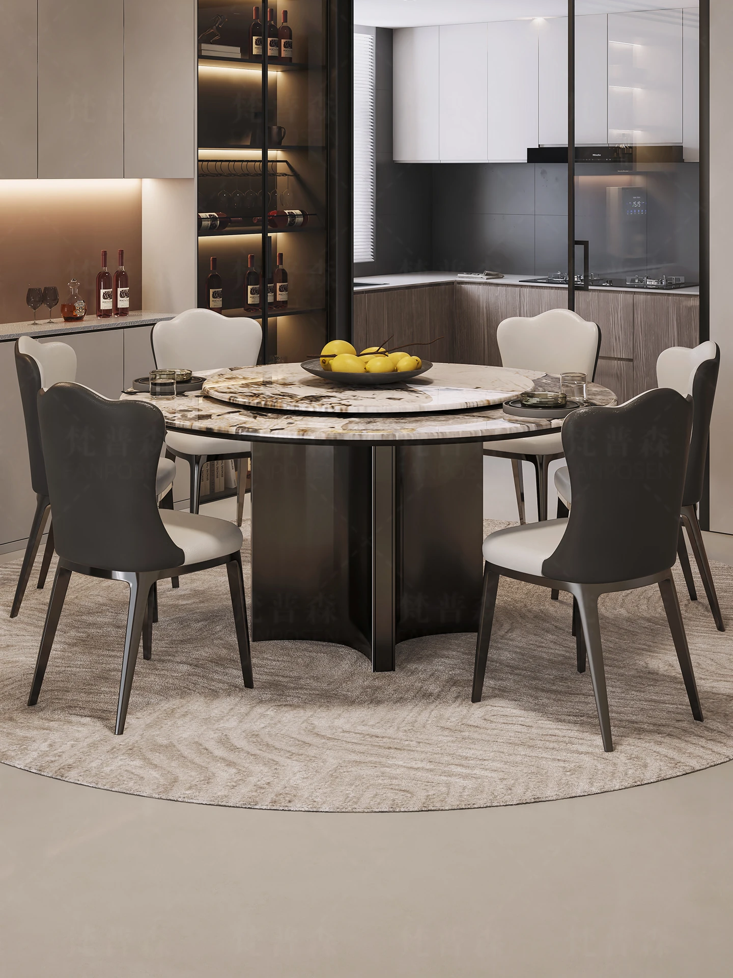 Elegant Marble Round Dining Table Set with Lazy Susan - Modern Minimalist High-End Design for Home Use, Perfect for Dining Room and Family Gatherings.