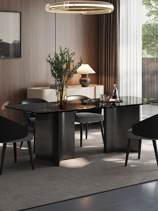 Imported Black Rose Luxury Stone Dining Table - Modern Italian Style, High-End Marble Design for Spacious Villas, Rectangular Shape, Perfect for Elegant Home Dining Experiences.