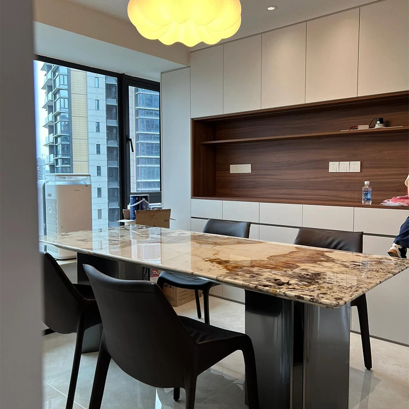Italian Imported Venetian Brown Natural Luxury Marble Dining Table - Elegant Rectangular Design for High-End Home Dining Experience