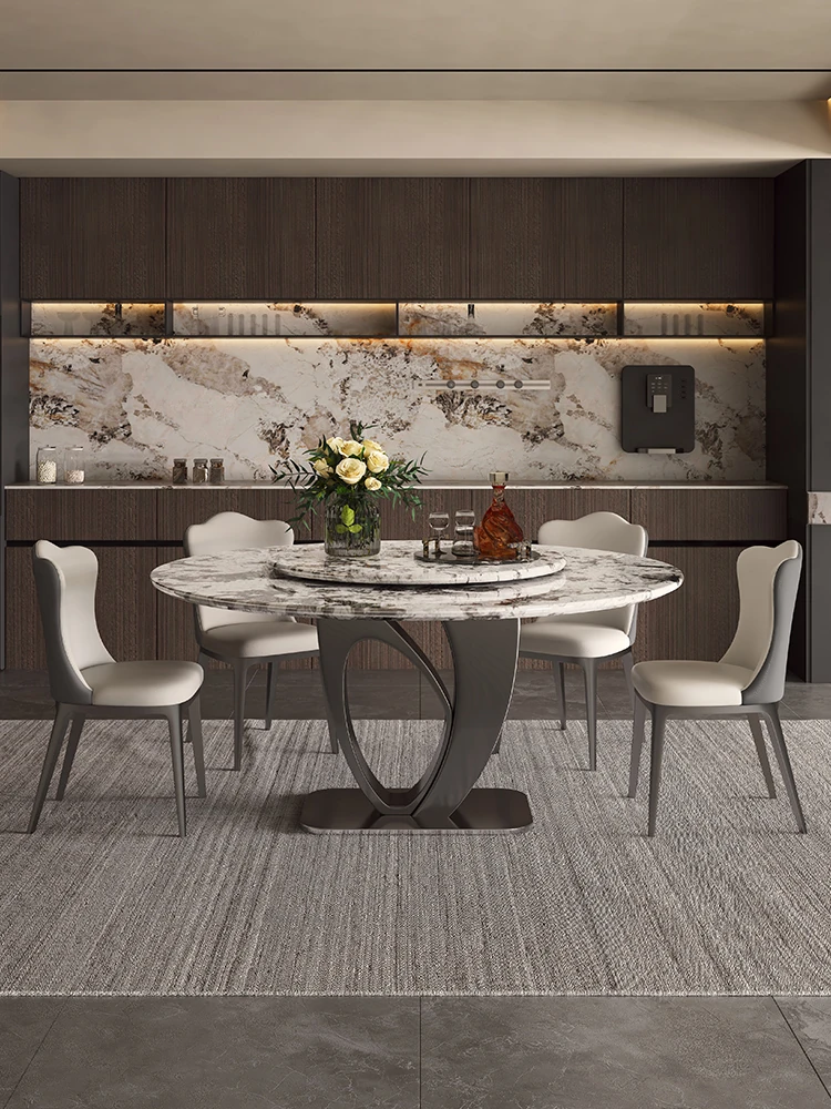 Luxury Snow Mountain Flying Fox Marble Dining Table and Chair Set - Modern Minimalist Round Table for Small Spaces, Perfect for Home Dining