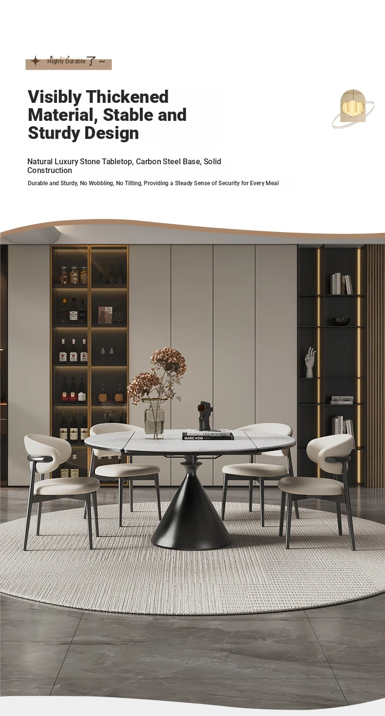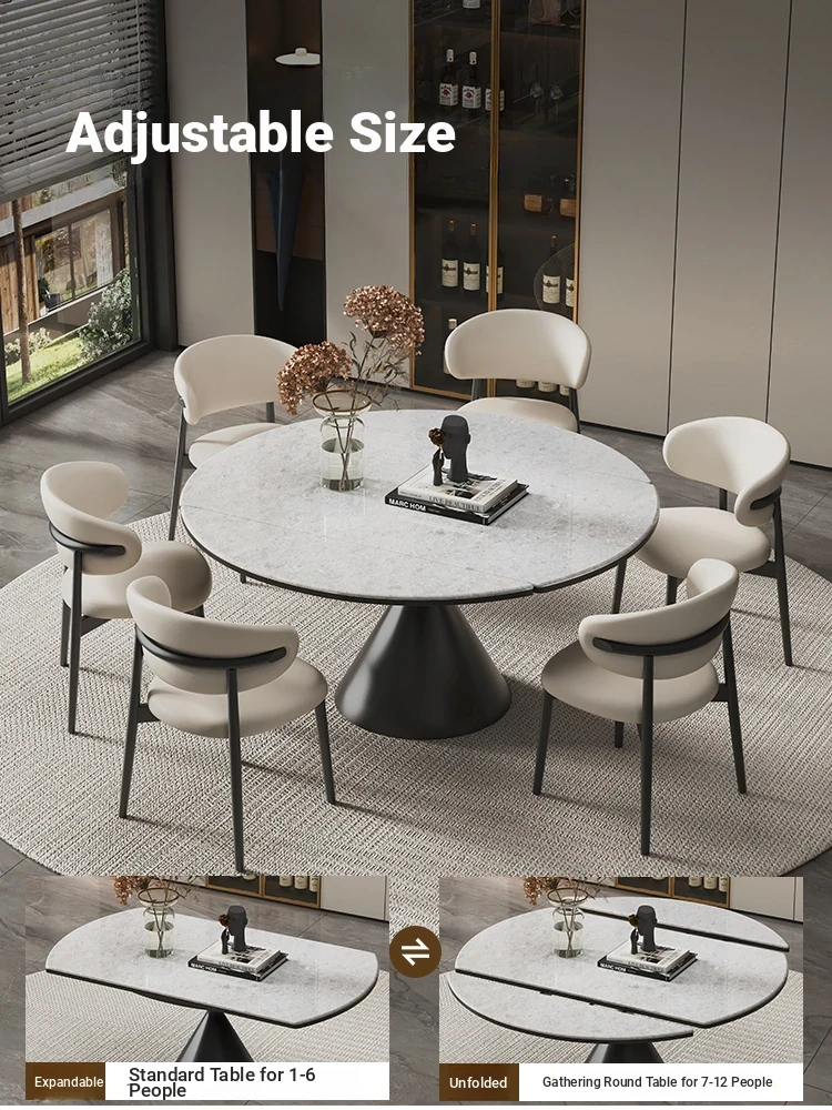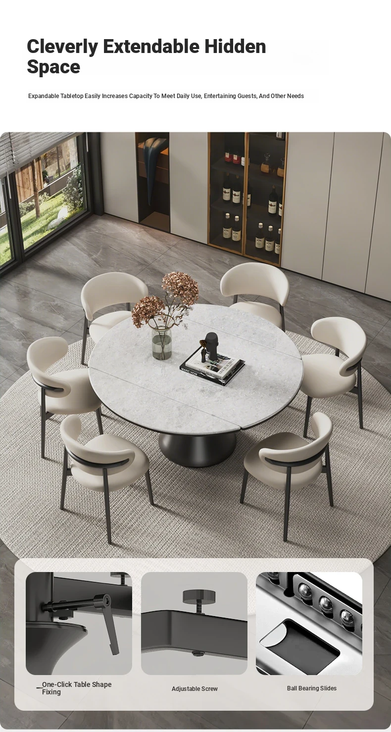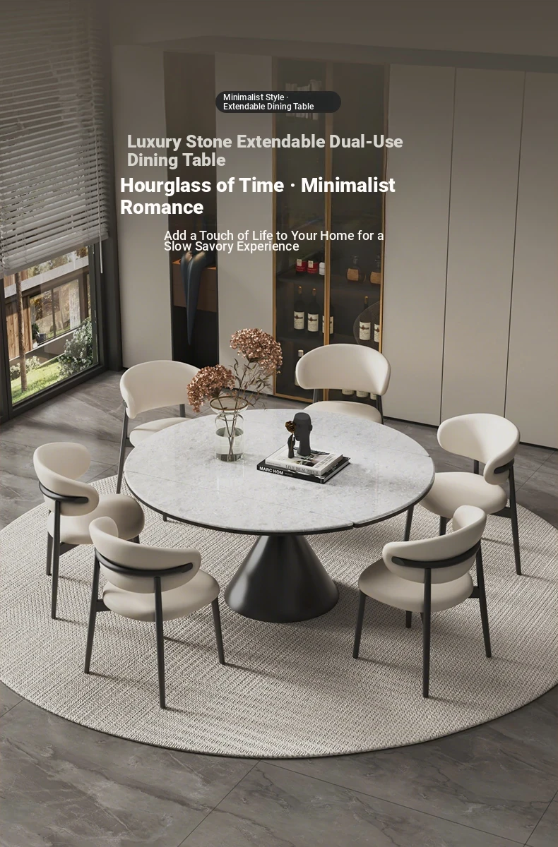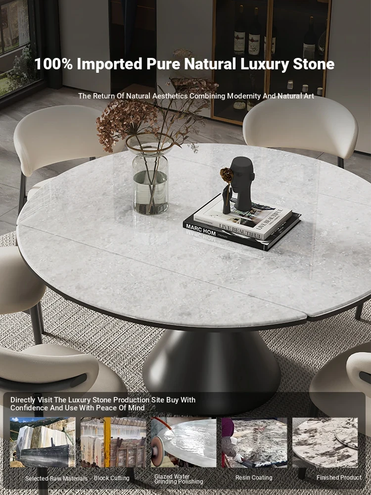 2025 New Luxury Natural Stone Crystal White Extendable Marble Round Dining Table Set with Chairs - Elevate Your Dining Experience