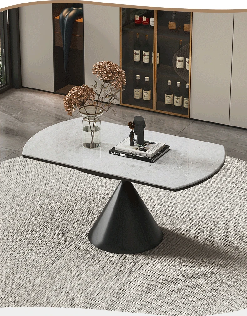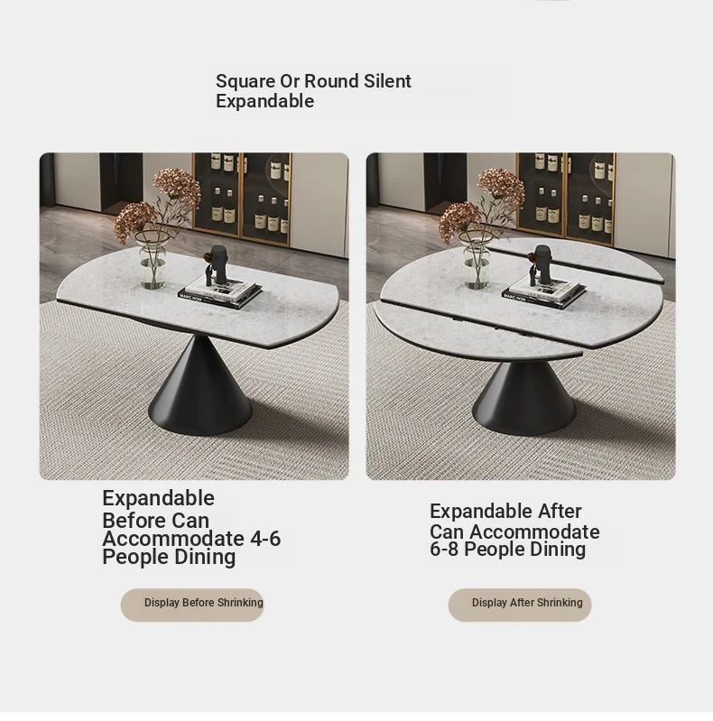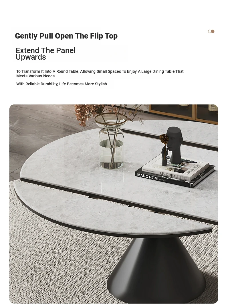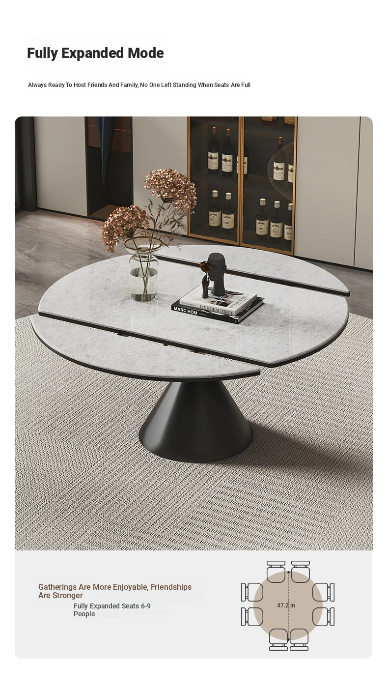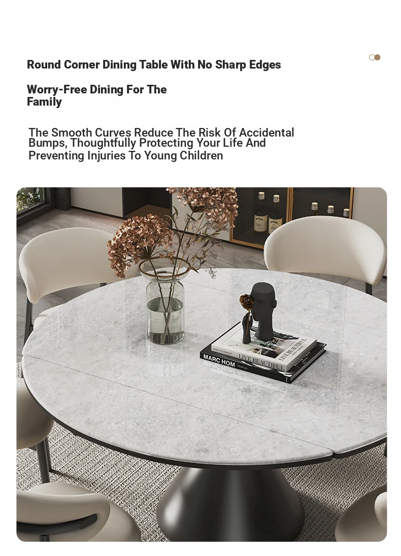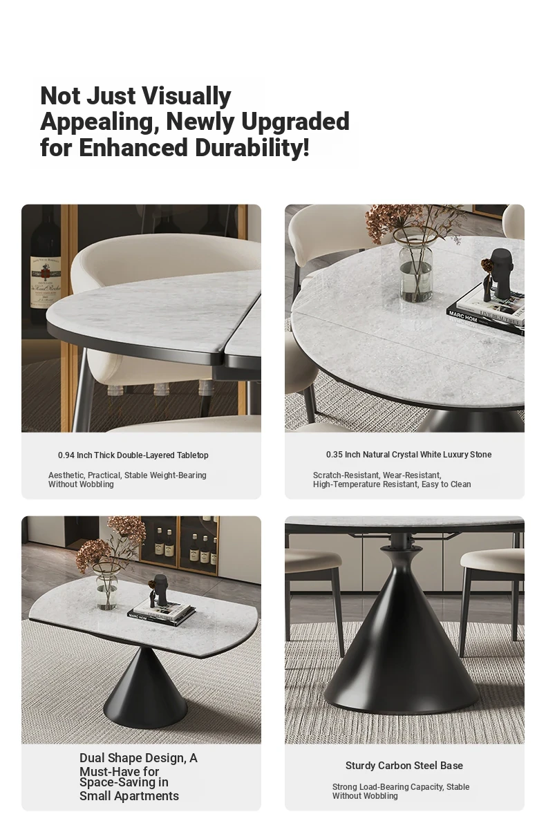 2025 New Luxury Natural Stone Crystal White Extendable Marble Round Dining Table Set with Chairs - Elevate Your Dining Experience