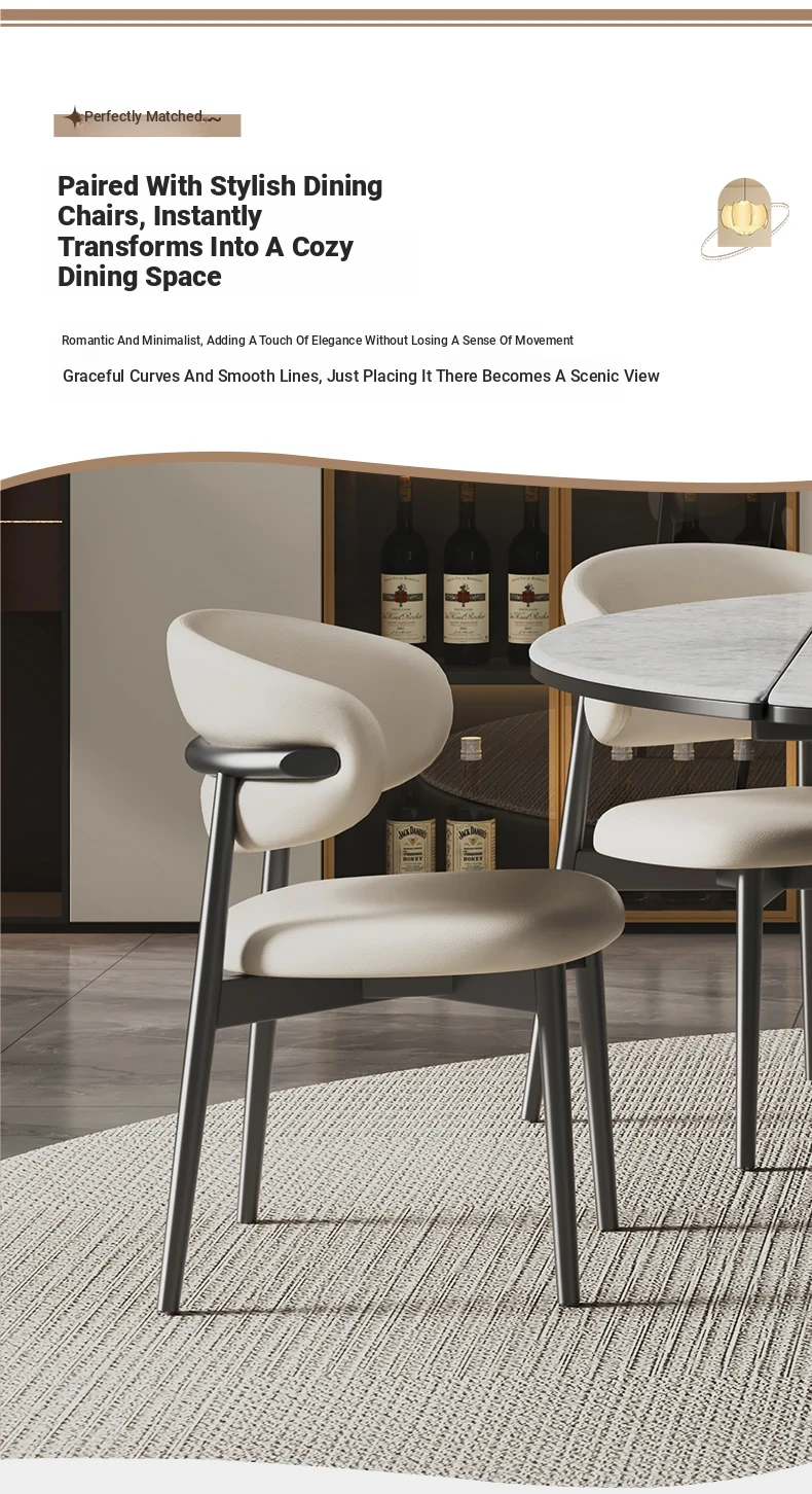 [Import Crystal White] 47.24in Pull-out Telescopic + Special Cat Scratch Leather Dining Chair * 4