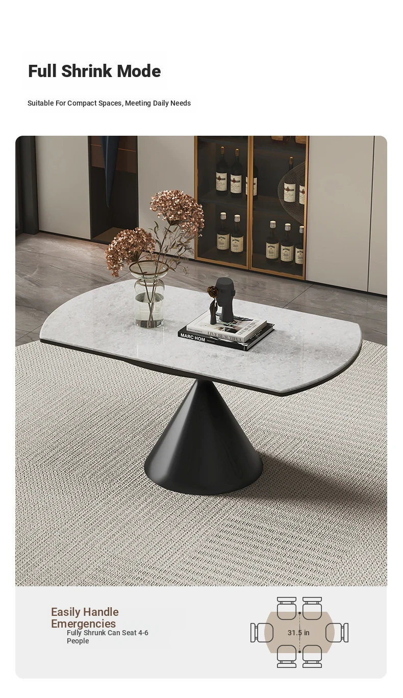 [Import Crystal White] 53.15in Pull-out Telescopic + Special Cat Scratch Leather Dining Chair * 6