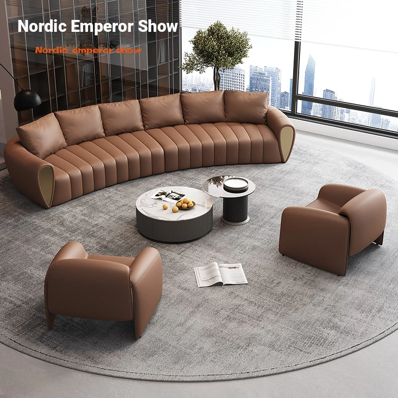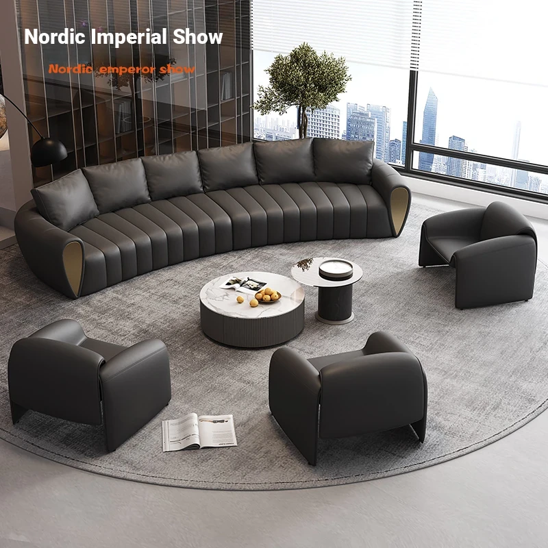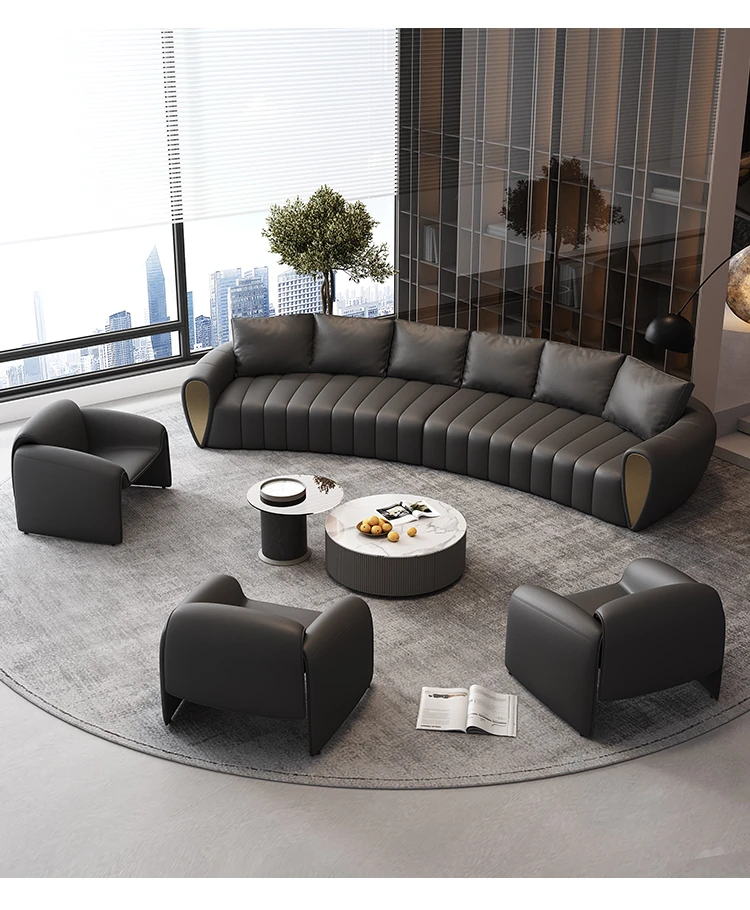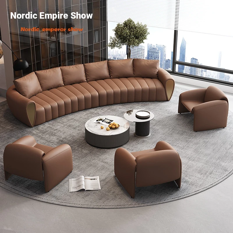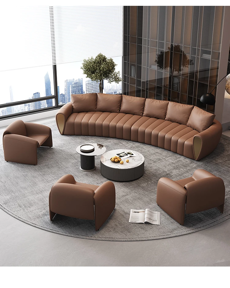 Curved Reception Sofa Set for Hotels and VIP Lounges - Elegant Arc Design for Lobbies and Sales Offices, Perfect for Customer Meetings and Conversations
