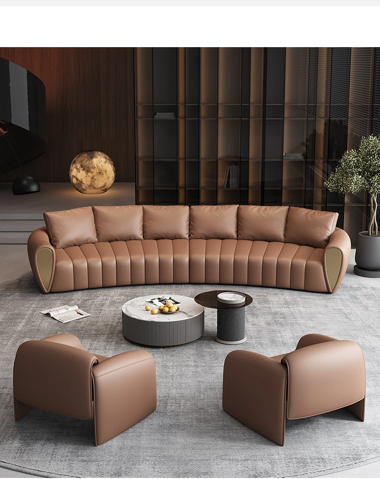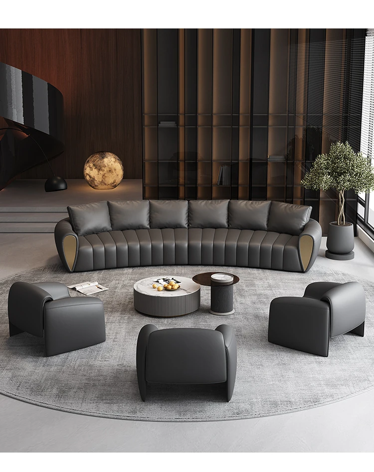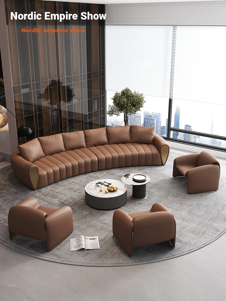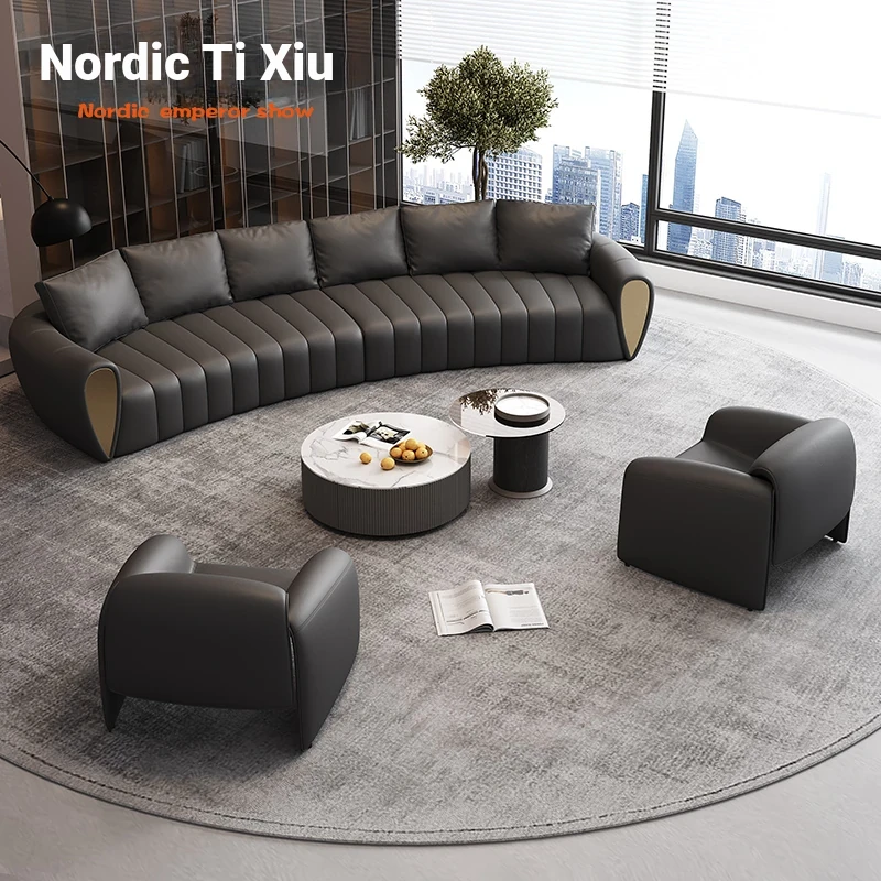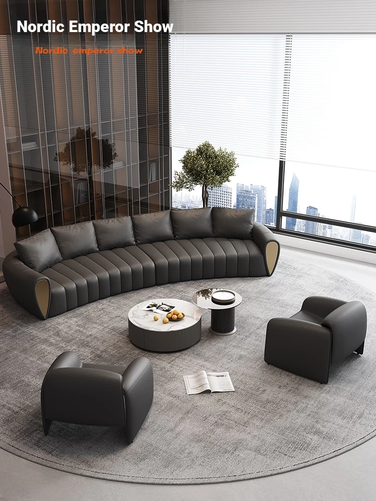 Curved Reception Sofa Set for Hotels and VIP Lounges - Elegant Arc Design for Lobbies and Sales Offices, Perfect for Customer Meetings and Conversations