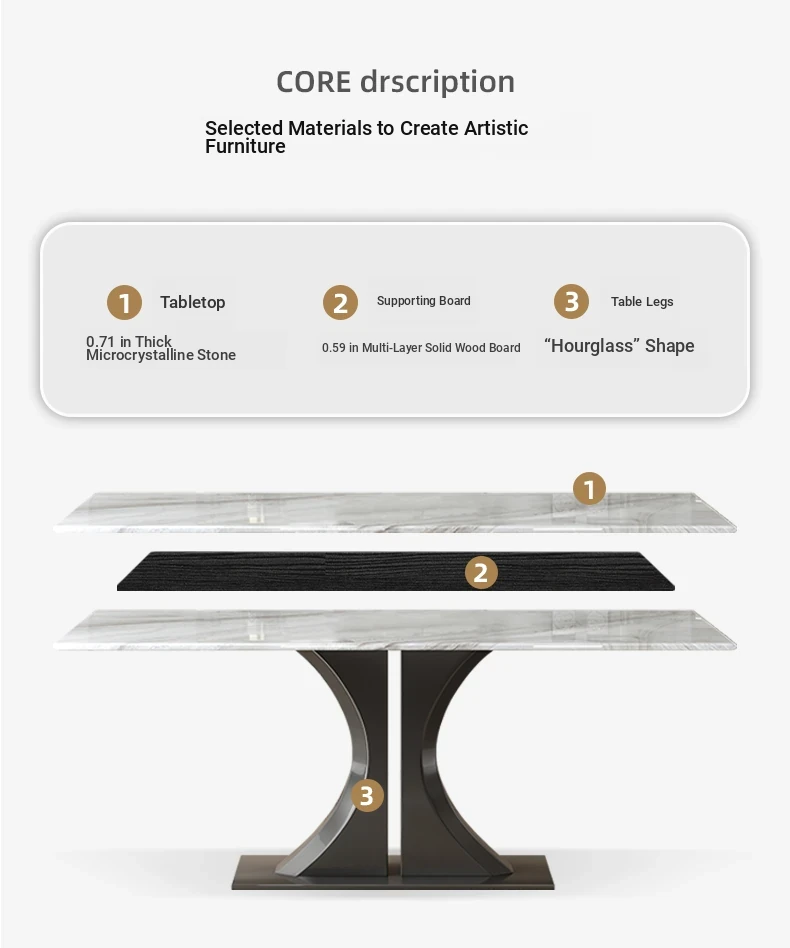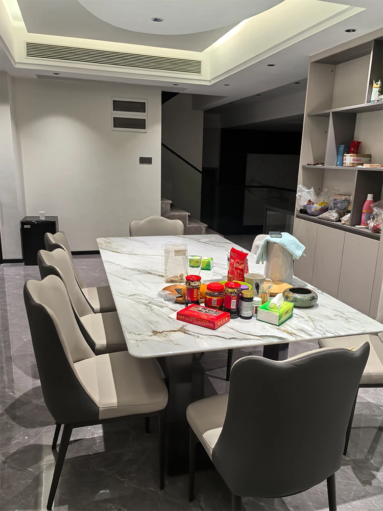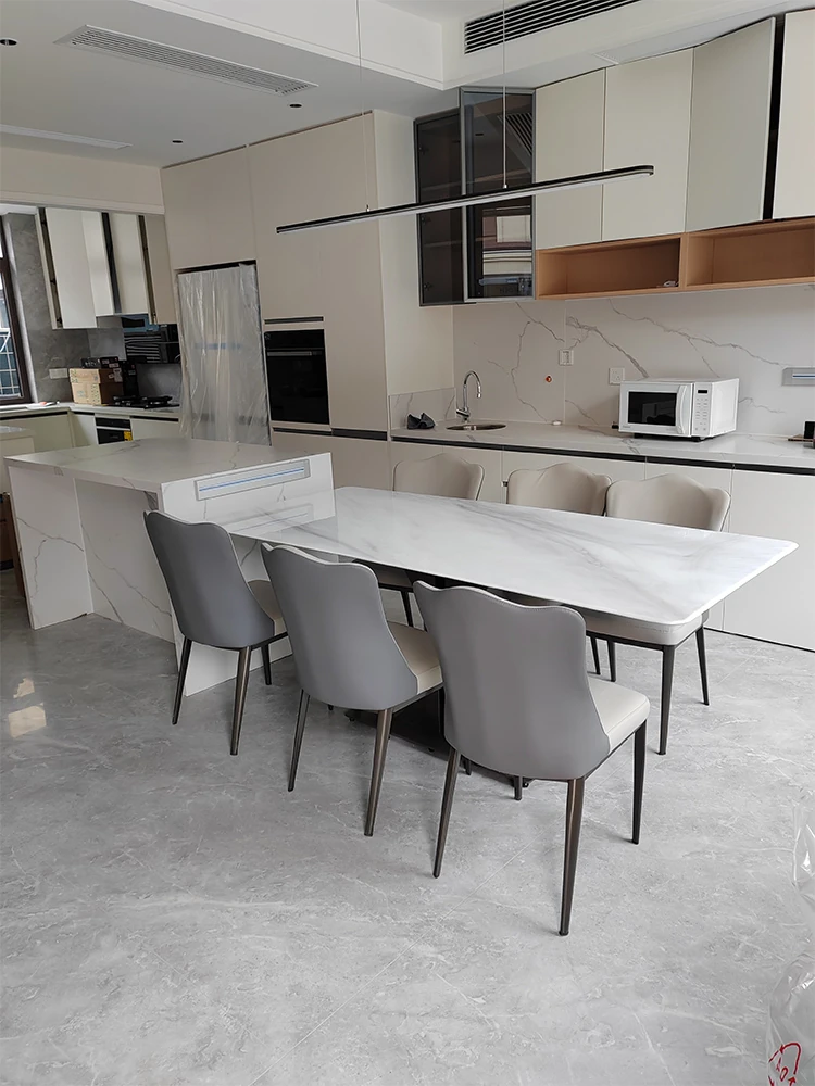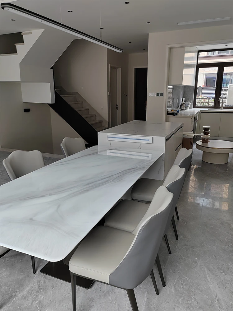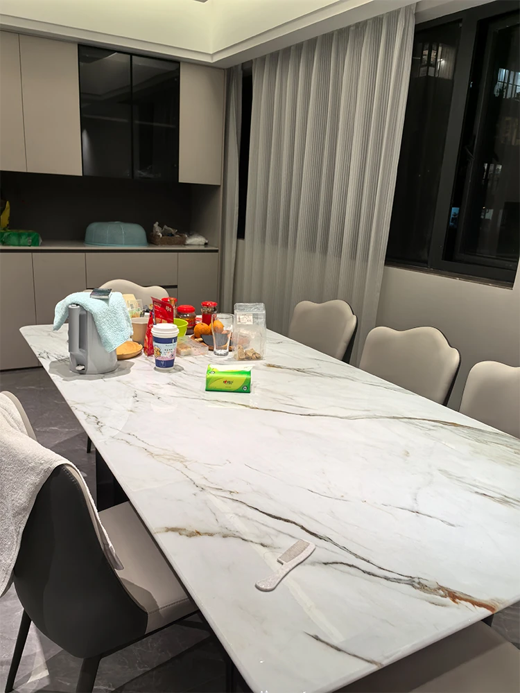 Elegant Italian-Style Rectangular Dining Table with Natural Marble and Ultra-Crystal Stone - Modern Minimalist Microcrystalline Home Table and Chair Set