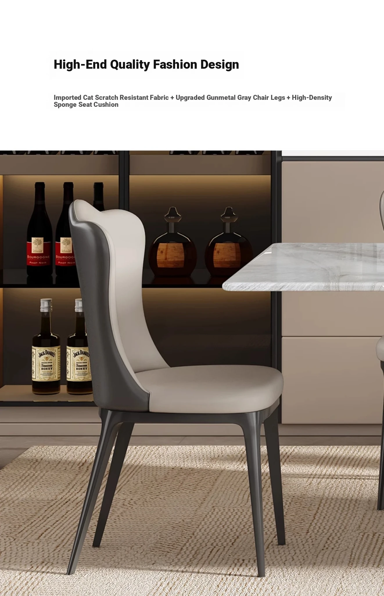 [Gao Ding] 78.74 in Natural Microlite Dining Table + Cat Scratch Leather Dining Chair * 4