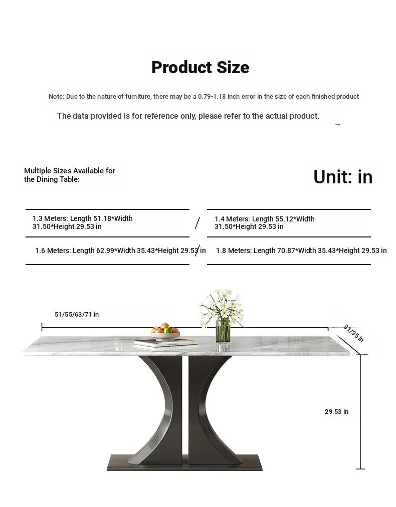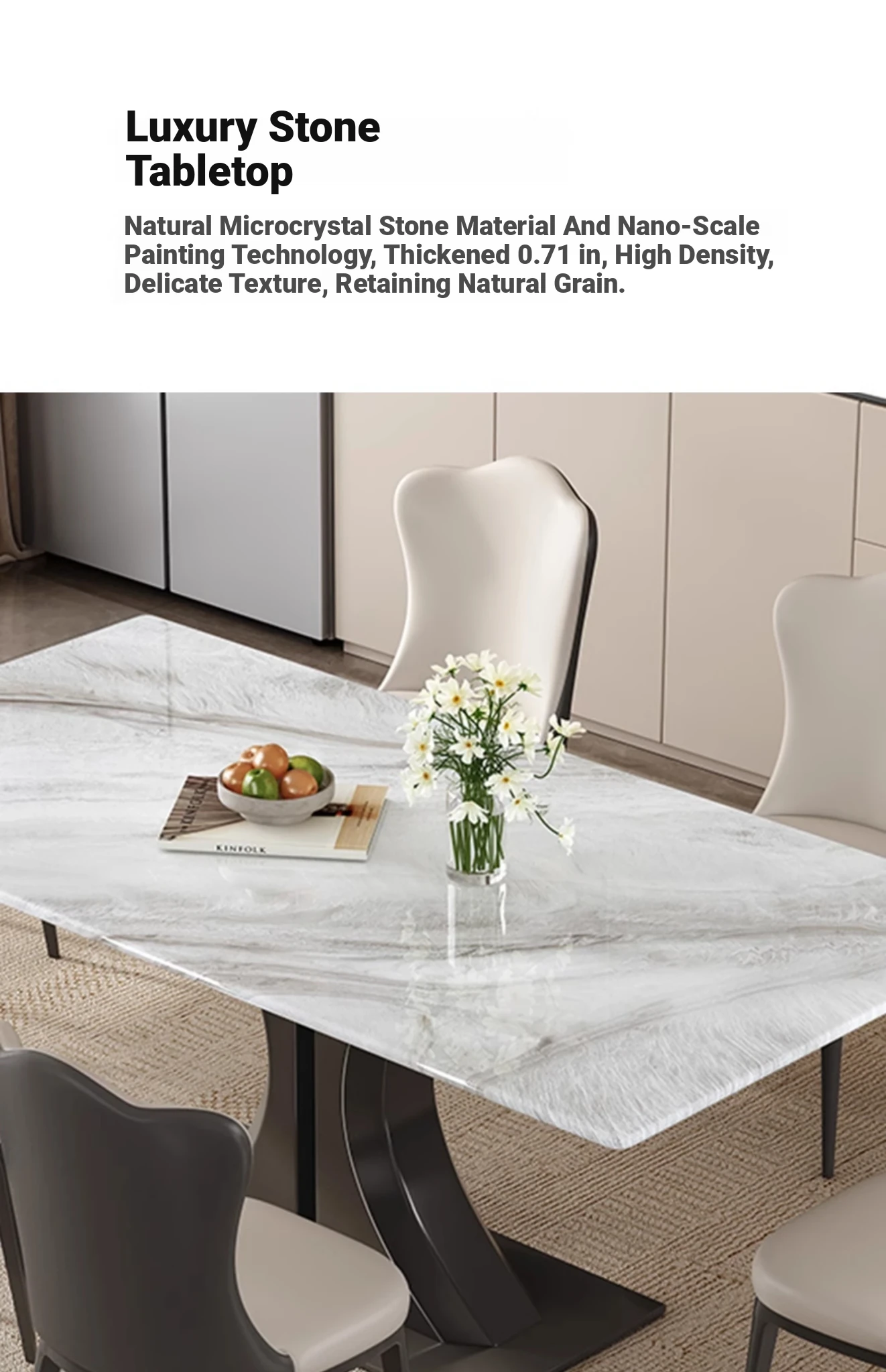 [Gao Ding] 55.12 in Natural Microlite Dining Table + Cat Scratch Leather Dining Chair * 4