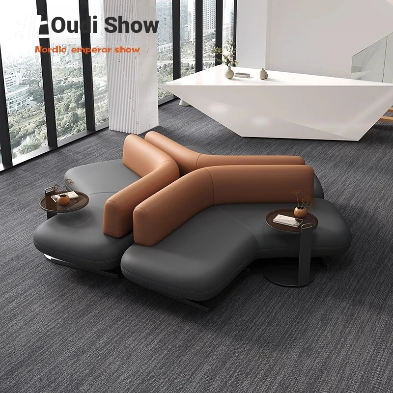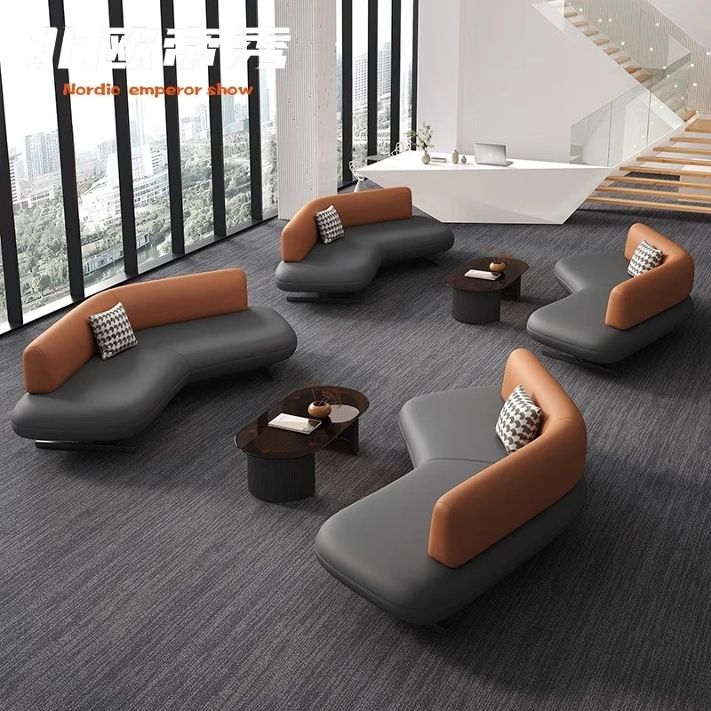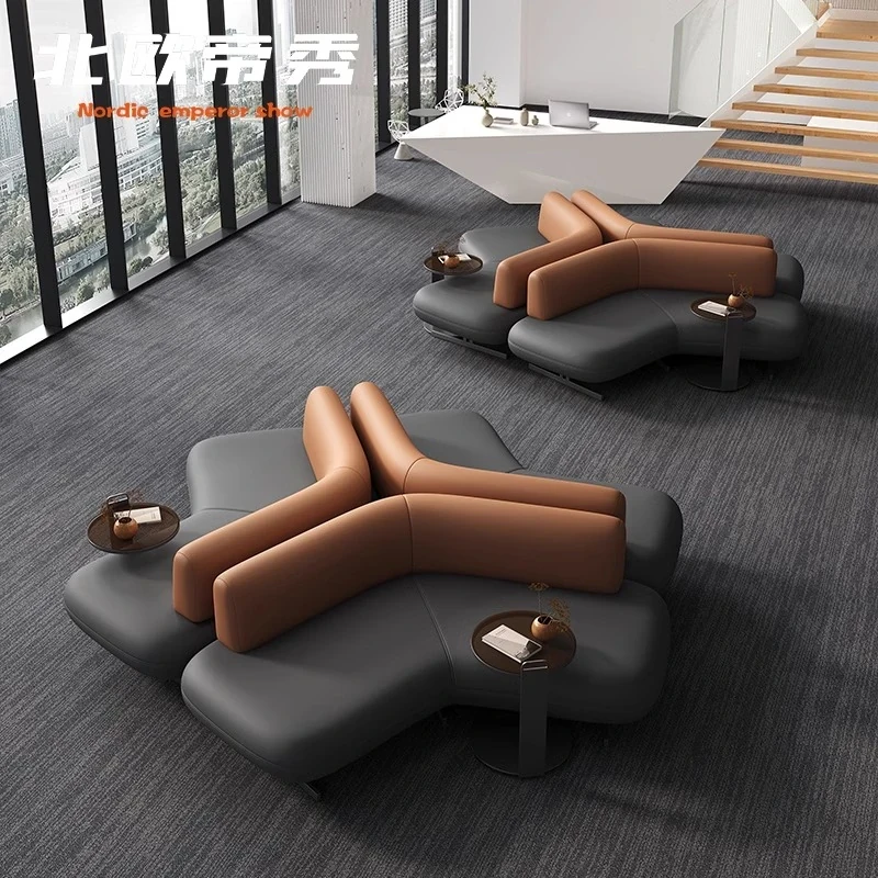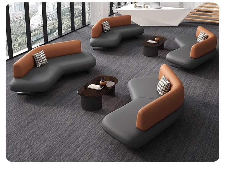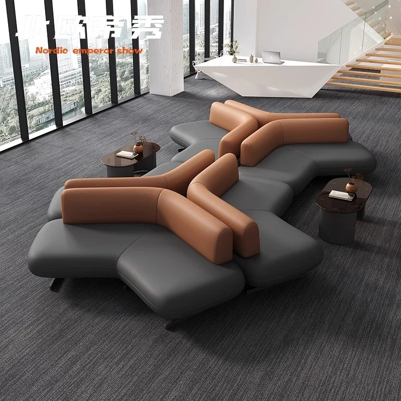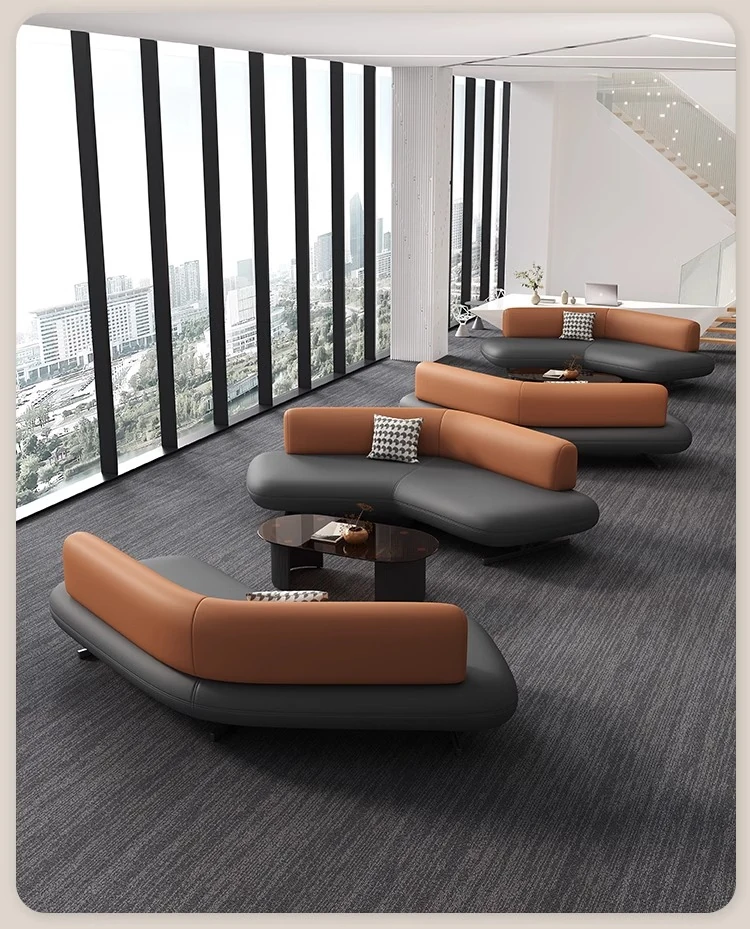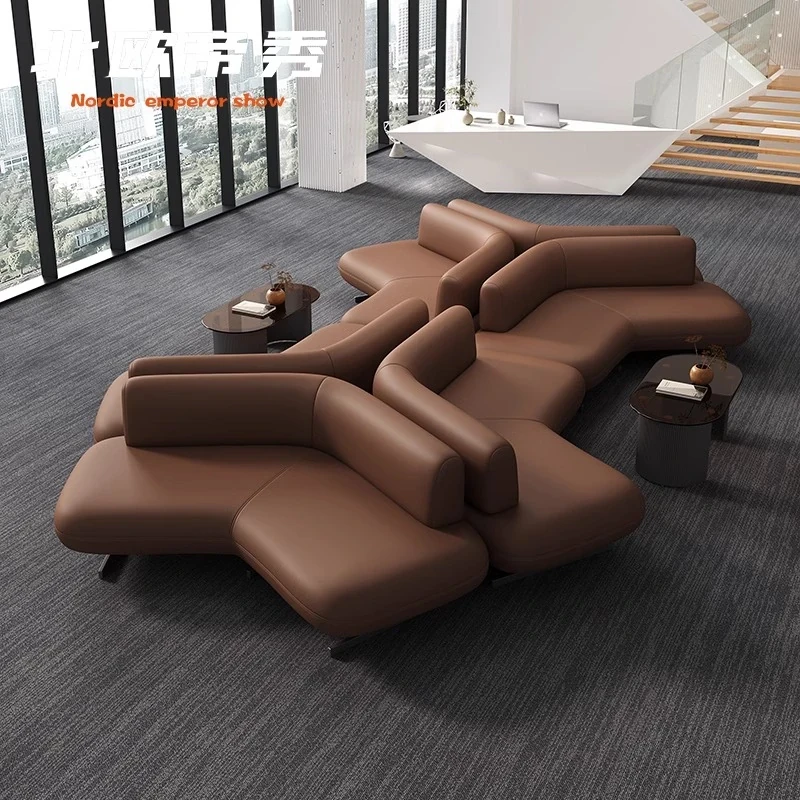 Elegant Leather Sofa for Sales Offices, Hotel Lobbies, Business Reception Areas, and Bank Waiting Zones - Perfect for Client Meetings and Comfortable Gatherings