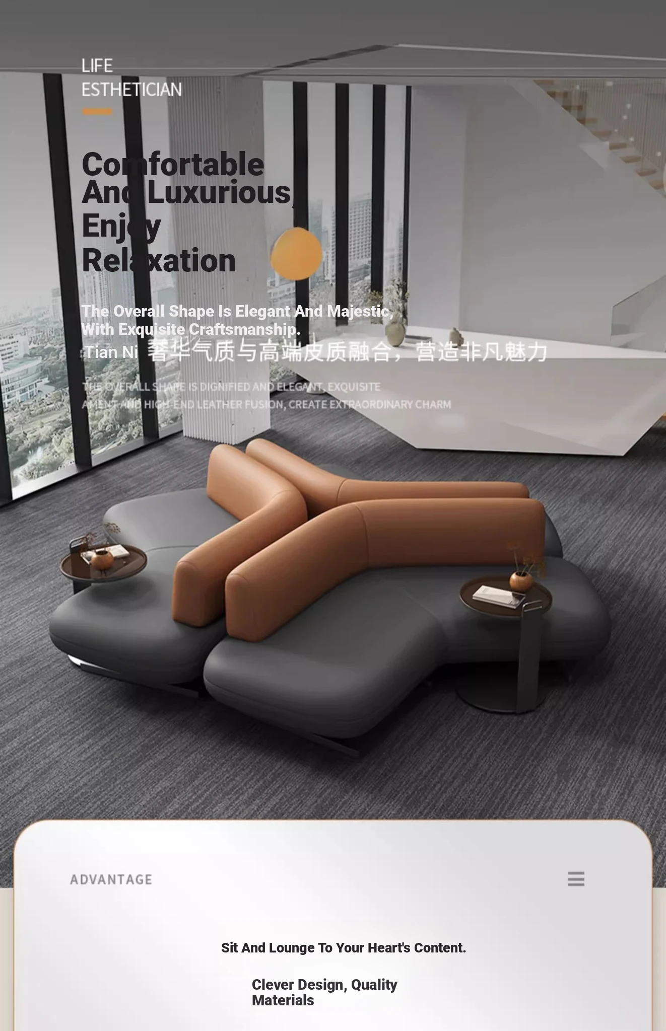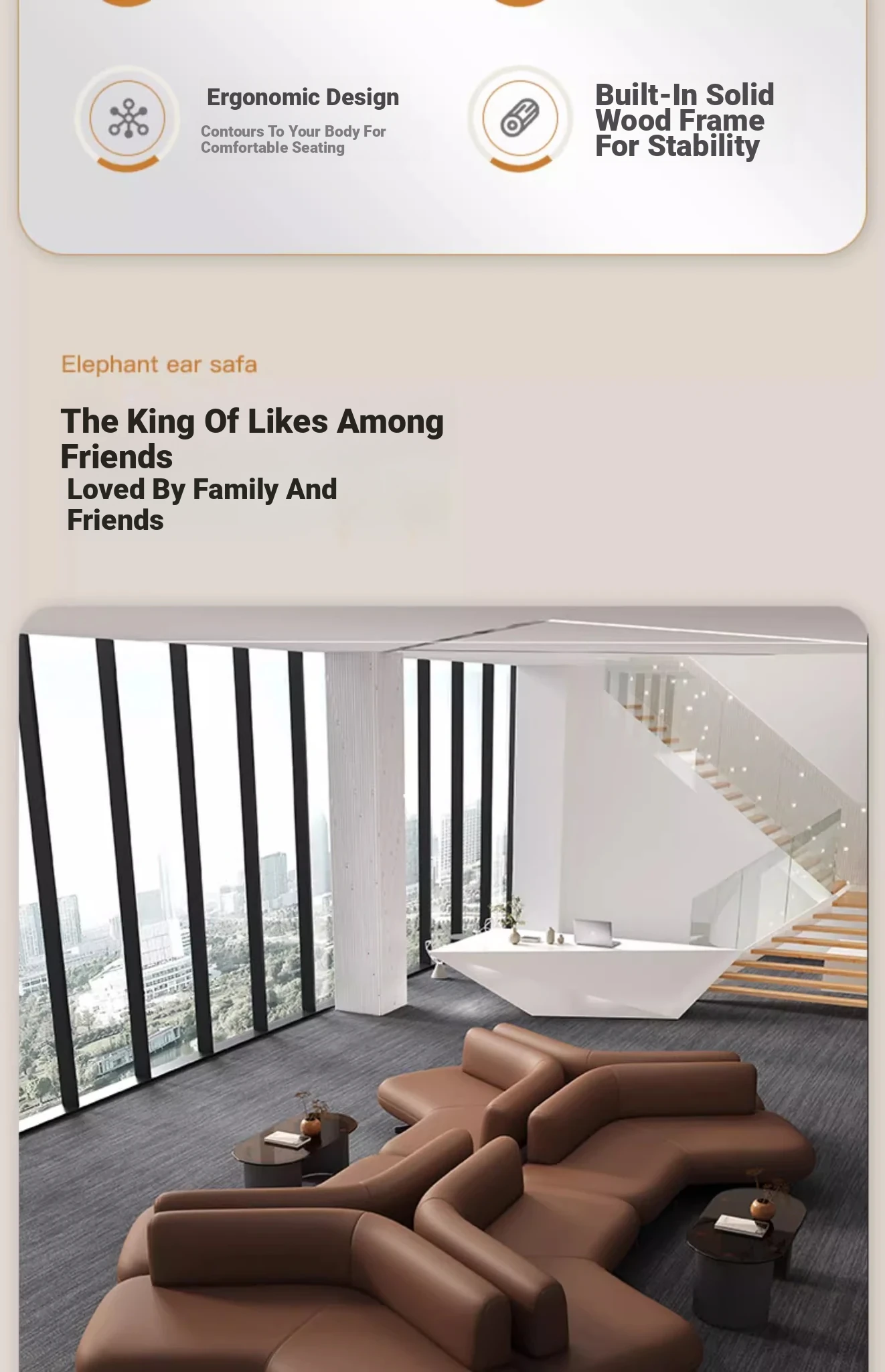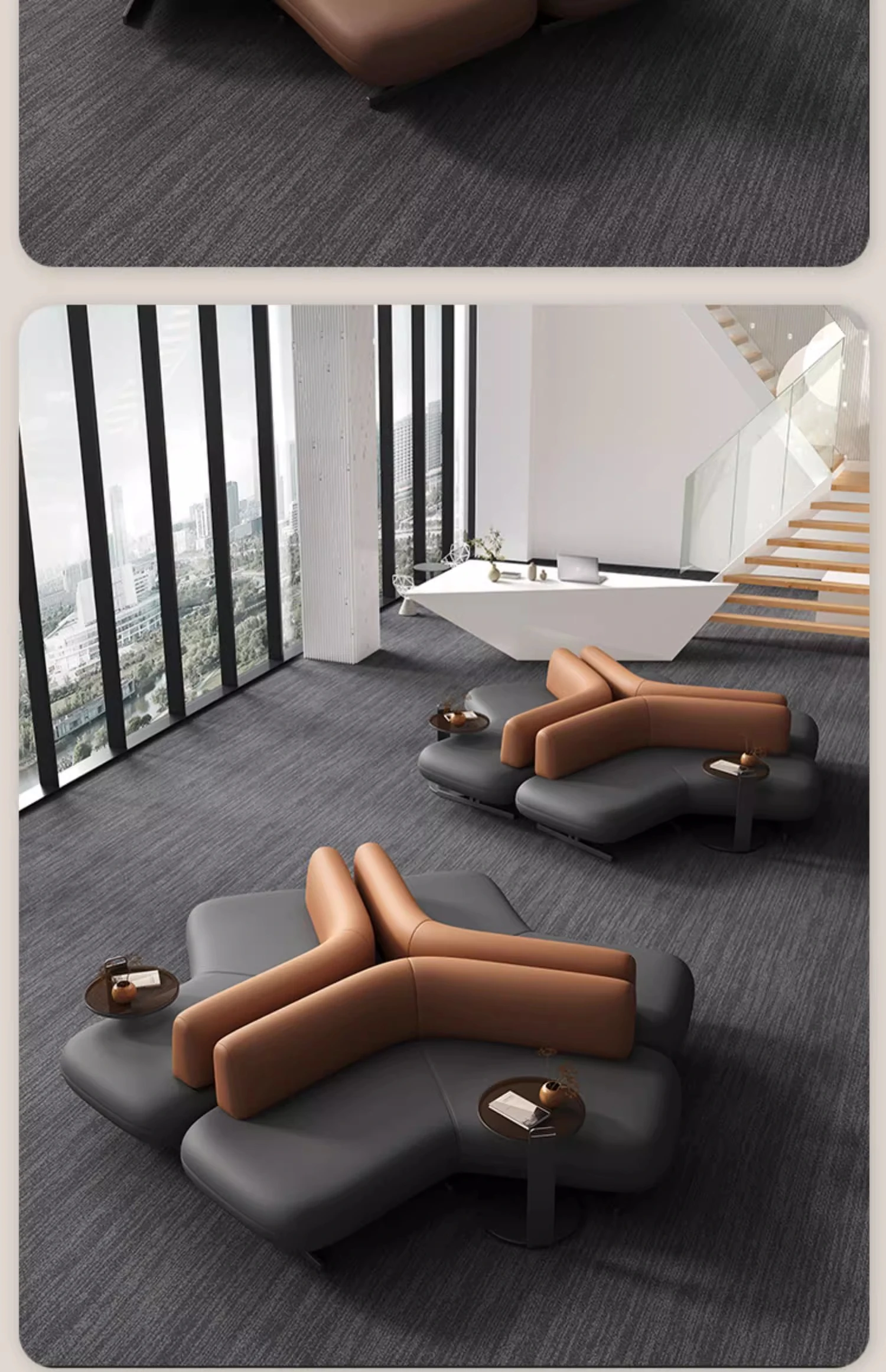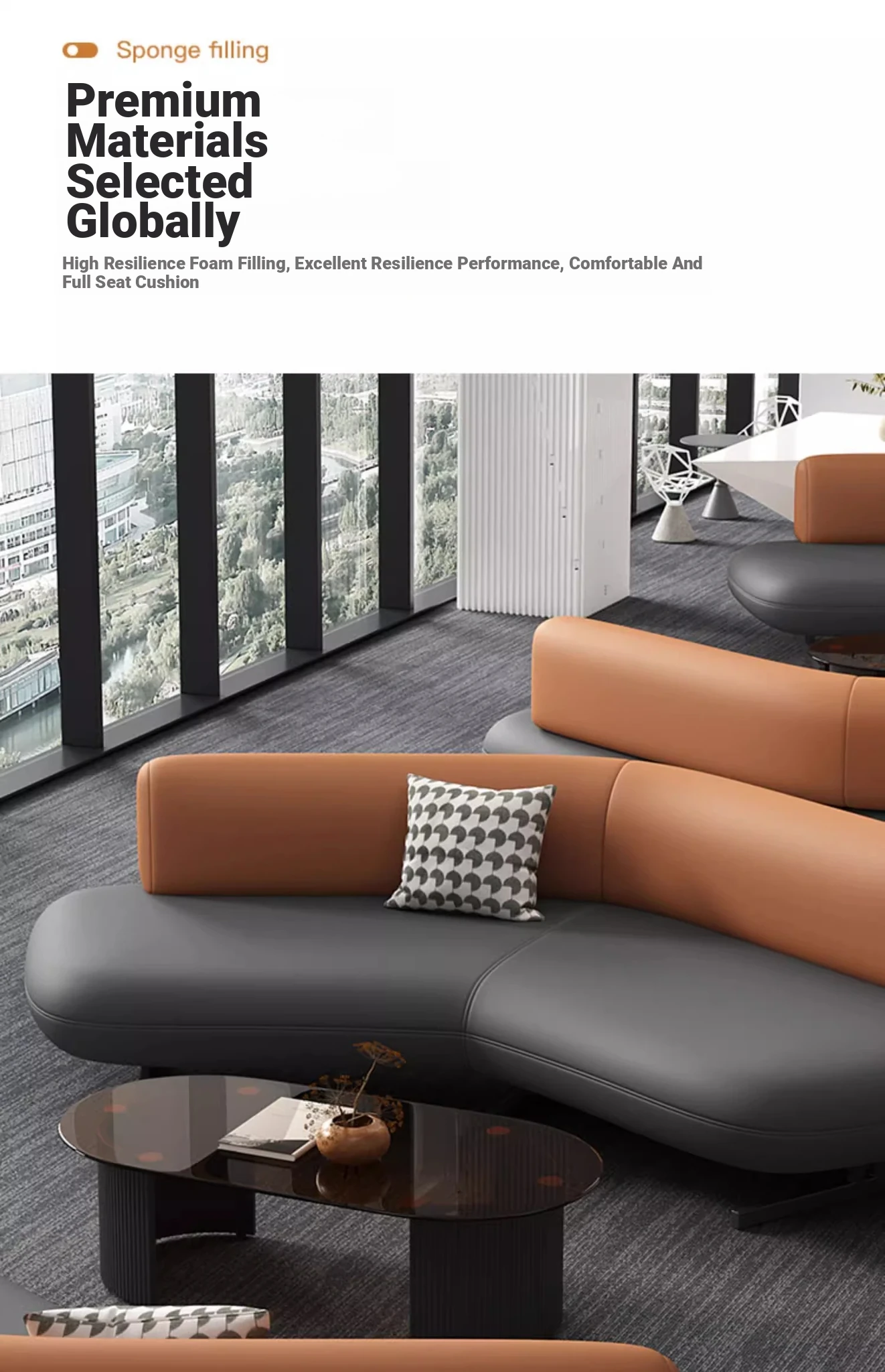 Elegant Leather Sofa for Sales Offices, Hotel Lobbies, Business Reception Areas, and Bank Waiting Zones - Perfect for Client Meetings and Comfortable Gatherings