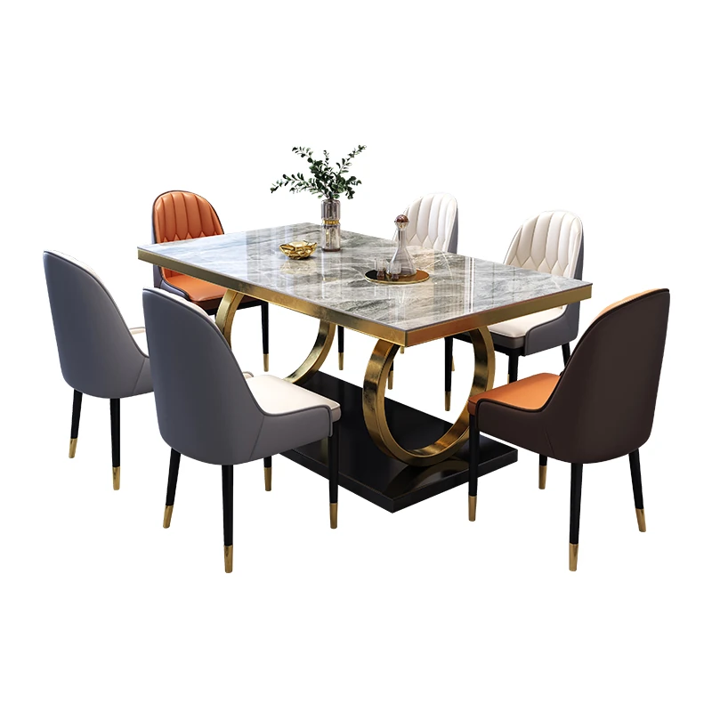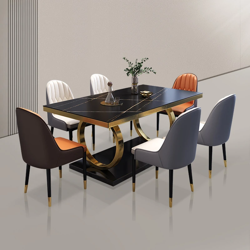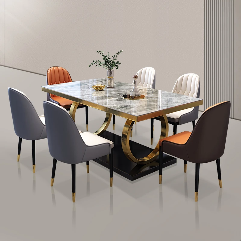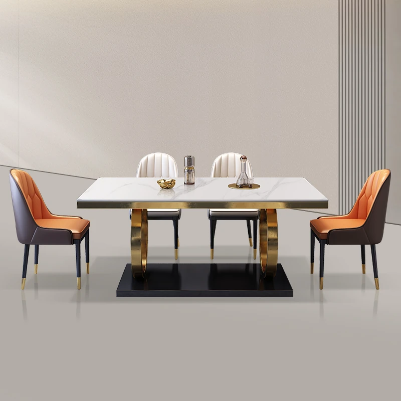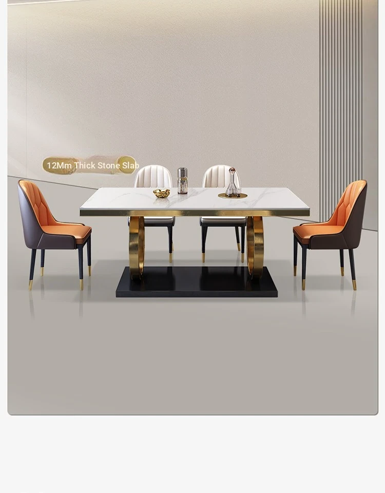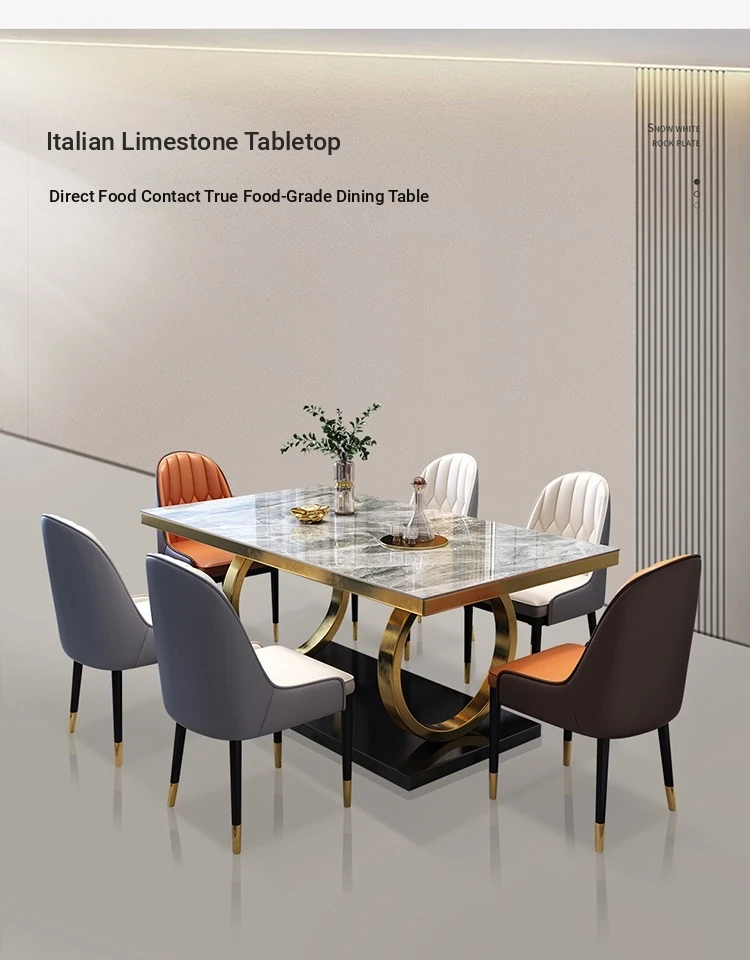 Elegant Marble Dining Table and Chair Set - Modern High-End Rectangular Italian Style Table for Small to Medium Homes, Perfect for Luxurious Dining Experiences