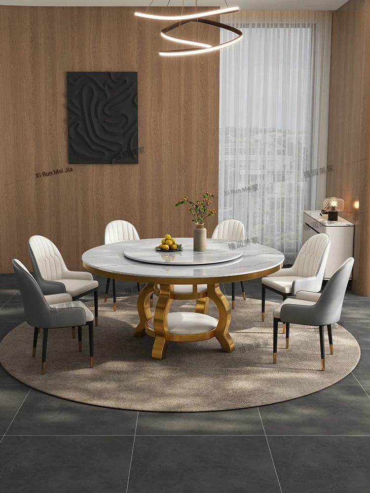 Elegant Marble Round Dining Table Set with Lazy Susan - Modern Minimalist High-End Design for Home Use, Perfect for Dining Room and Family Gatherings.
