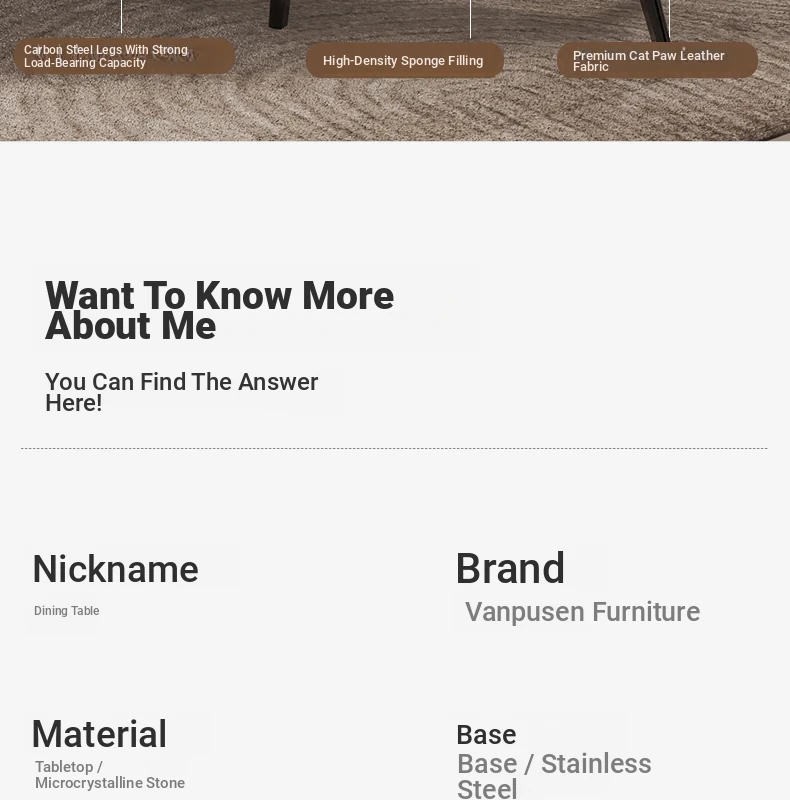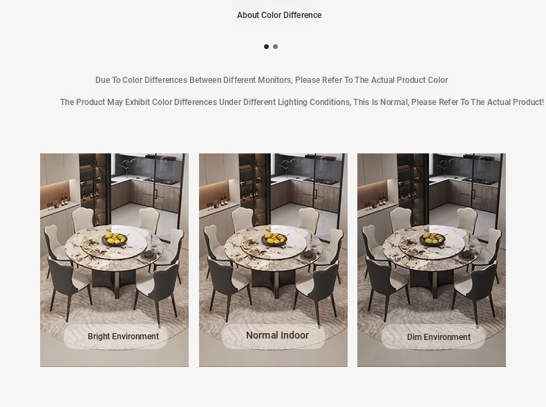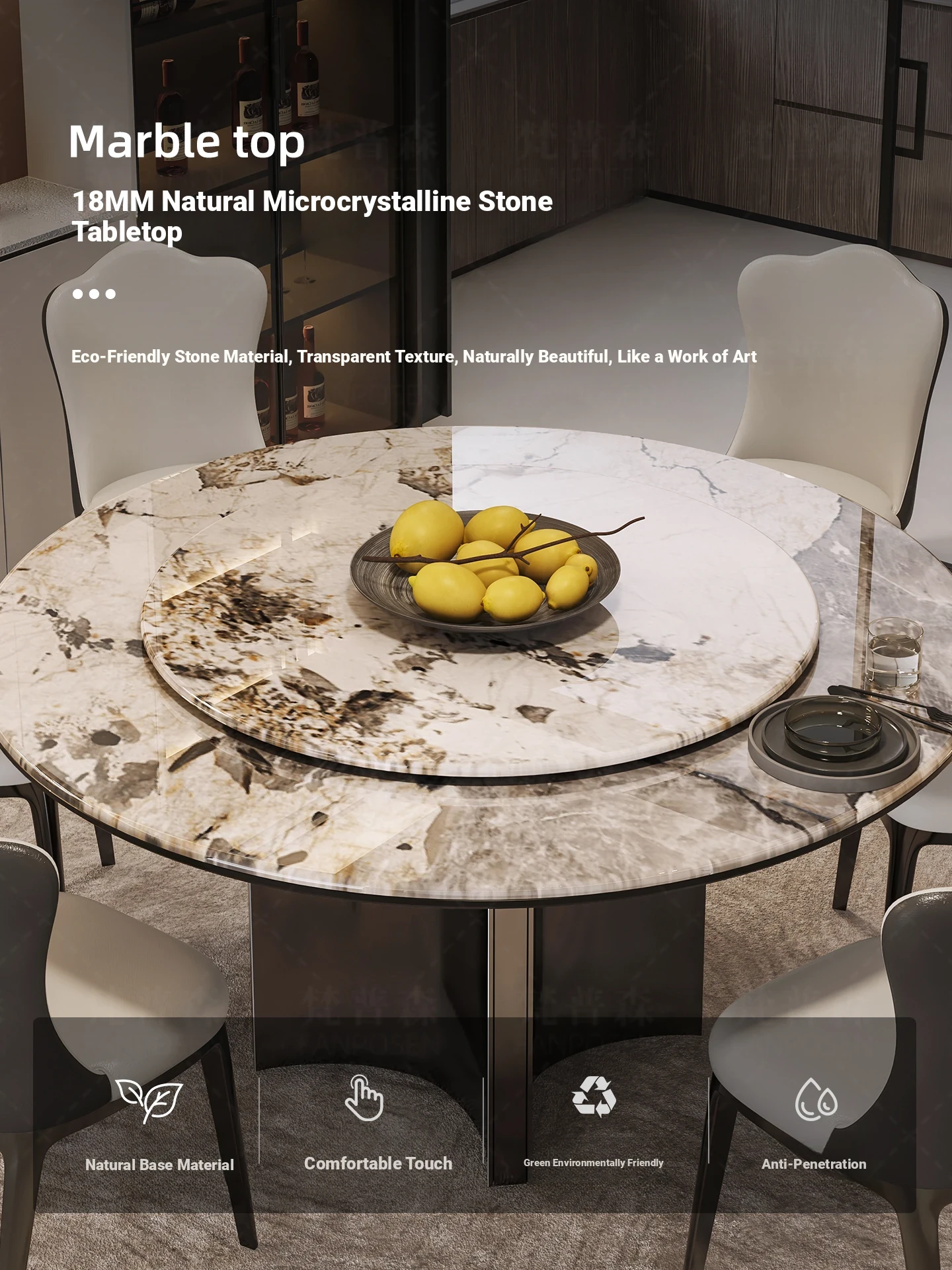 [Upgraded Composite Full-support] Pandora Microlite Round Dining Table + Turntable + Cat's Claw Leather Dining Chair * 6