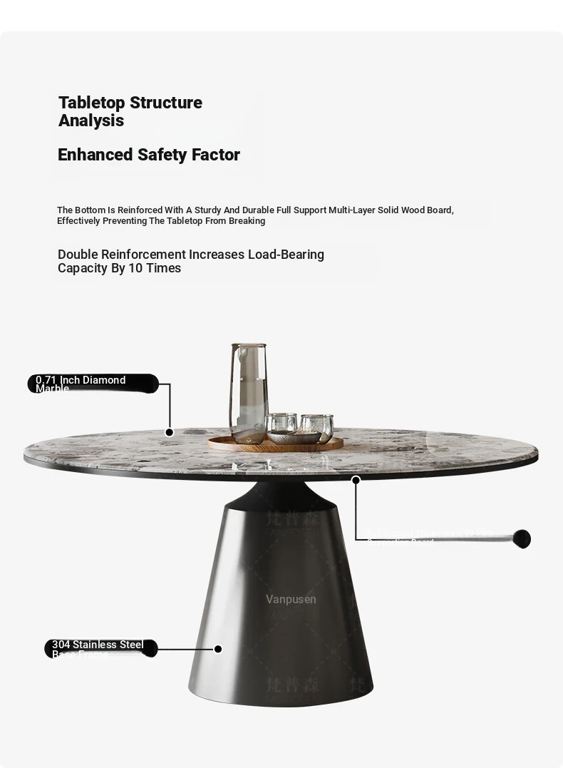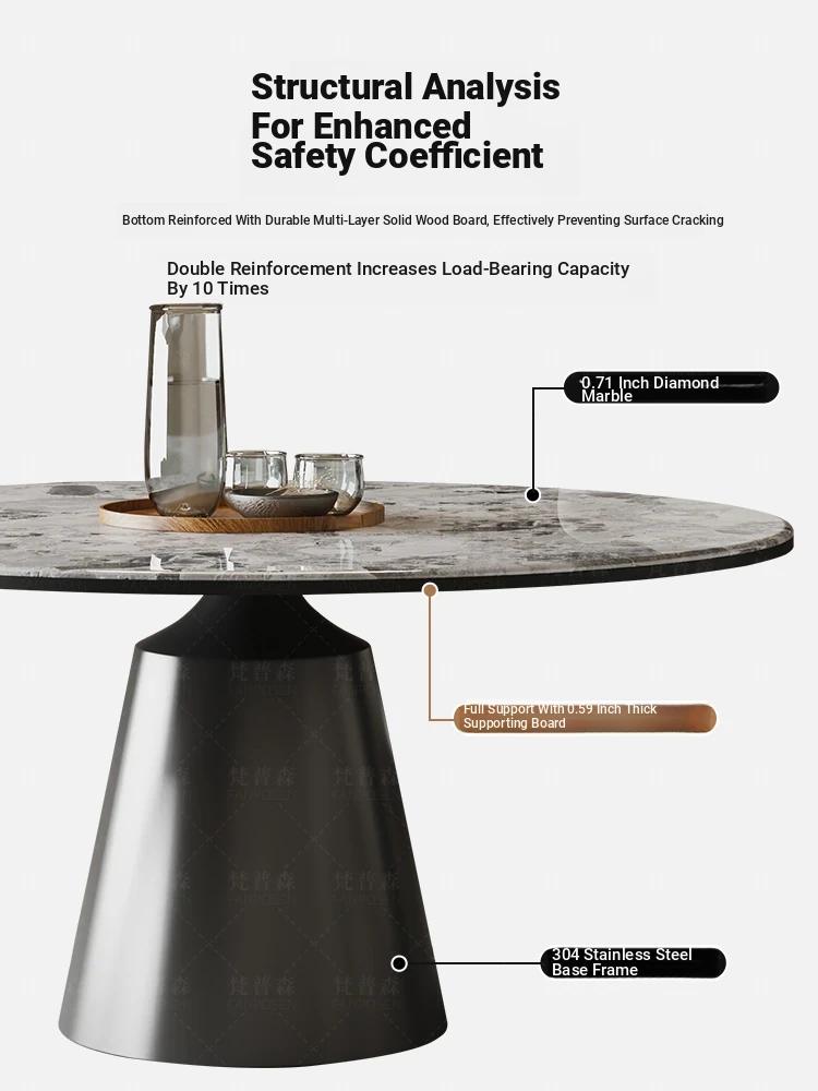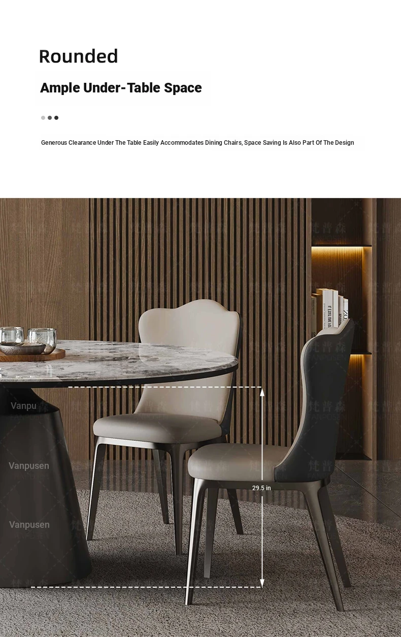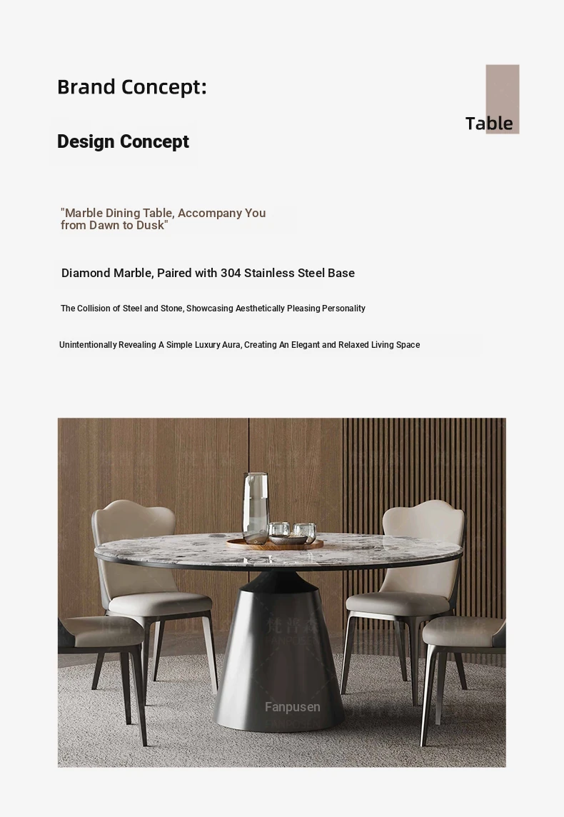 Elegant Oreo Gray Marble Round Dining Table Set - Luxury Minimalist Design for Villas - Stylish New Italian-Inspired Dining Chairs and Table Combo