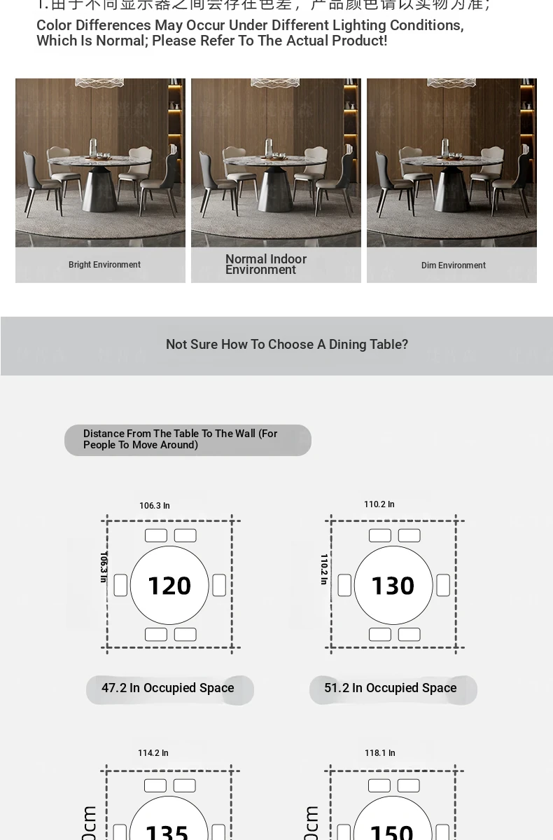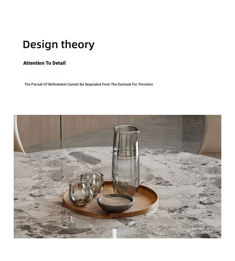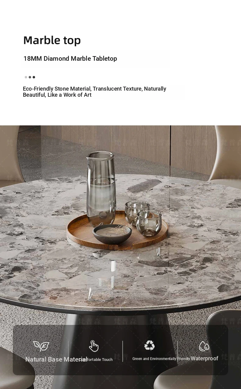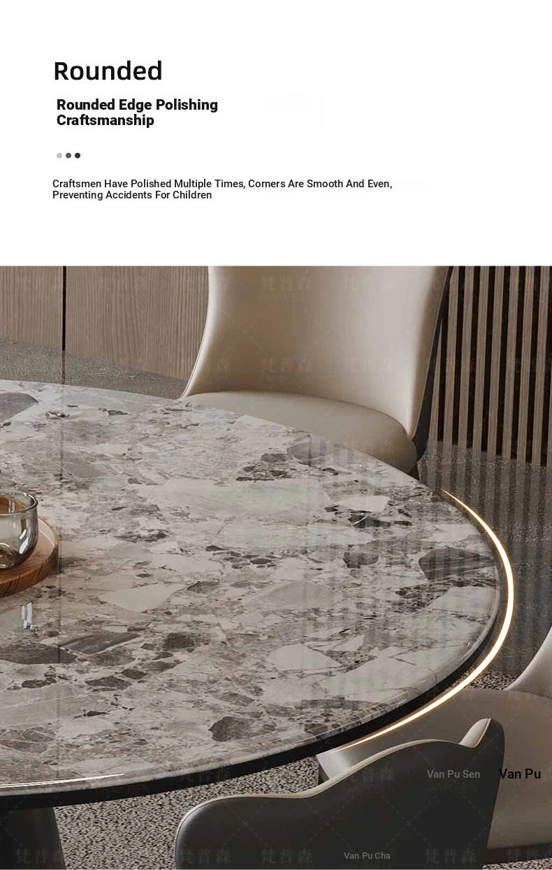 Oreo gray marble round dining table + turntable + Super Cat scratch leather dining chair * 6