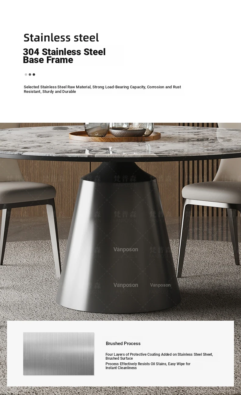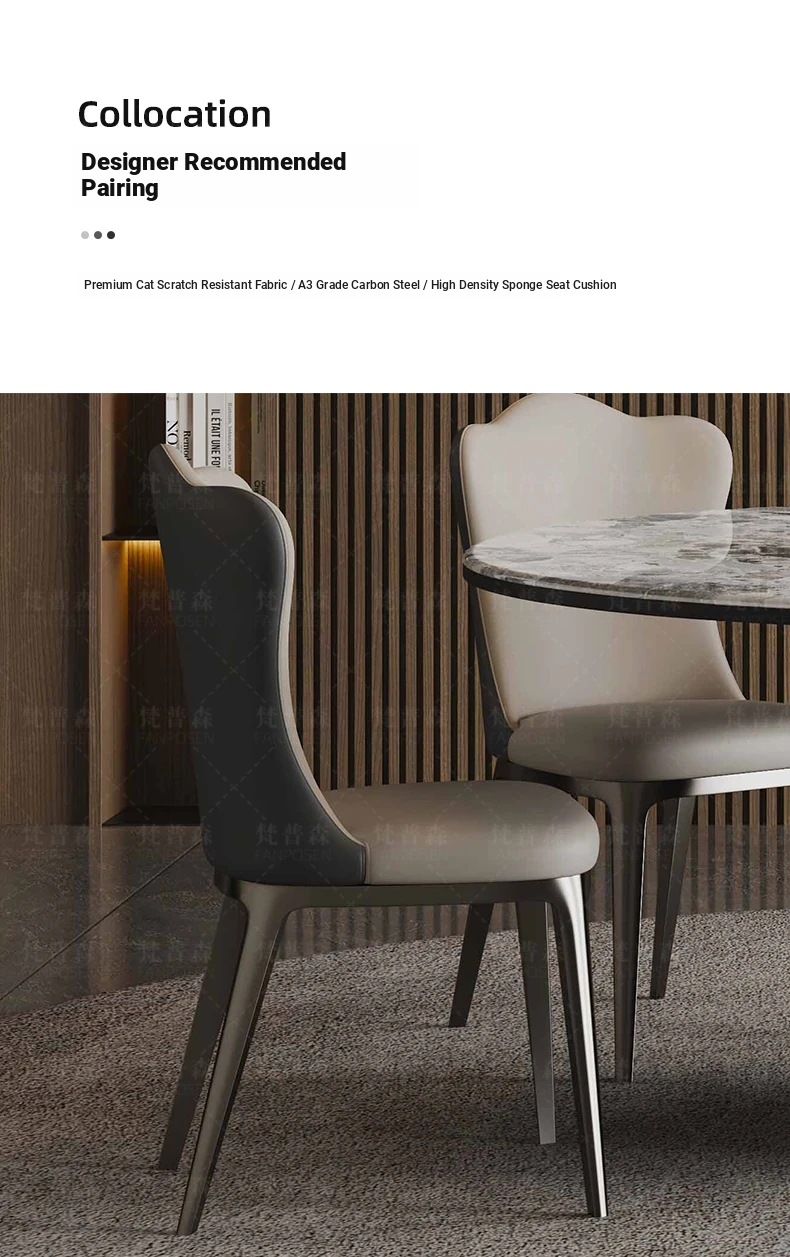 Oreo gray marble round dining table + Super Cat scratch leather dining chair * 6