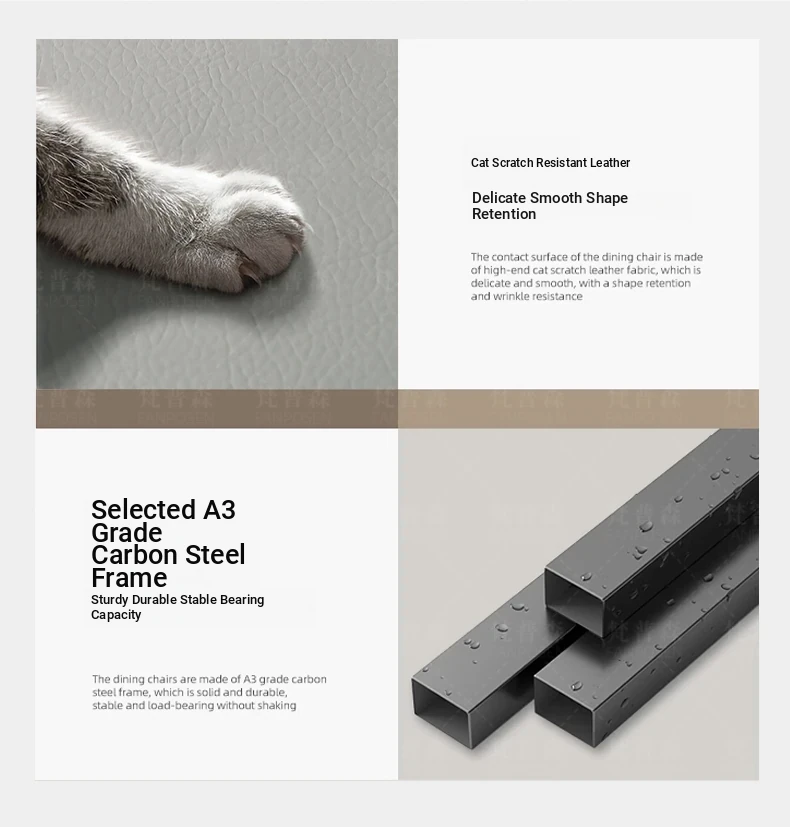 Oreo gray marble round dining table + Super Cat scratch leather dining chair * 4