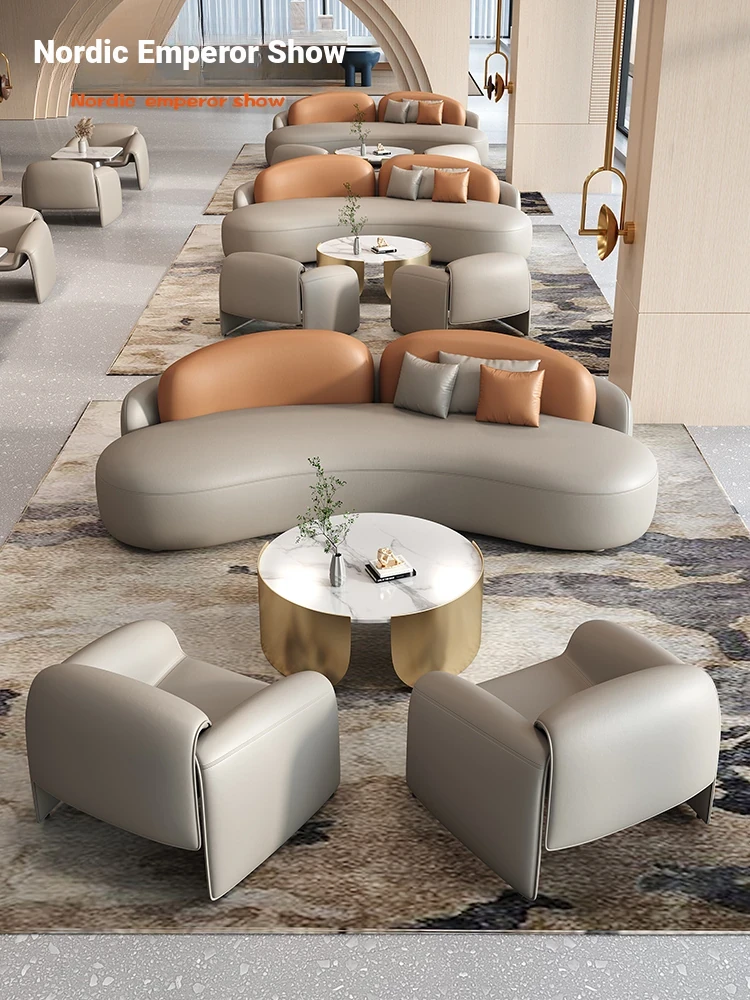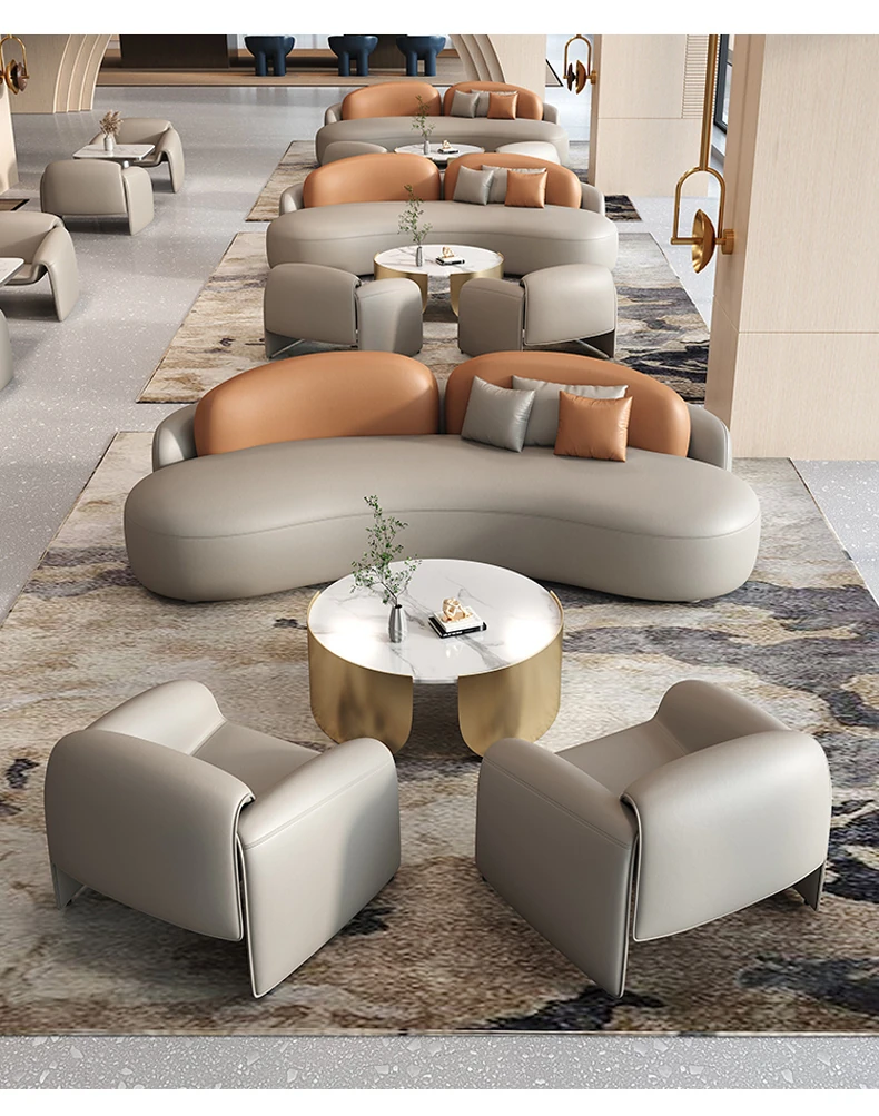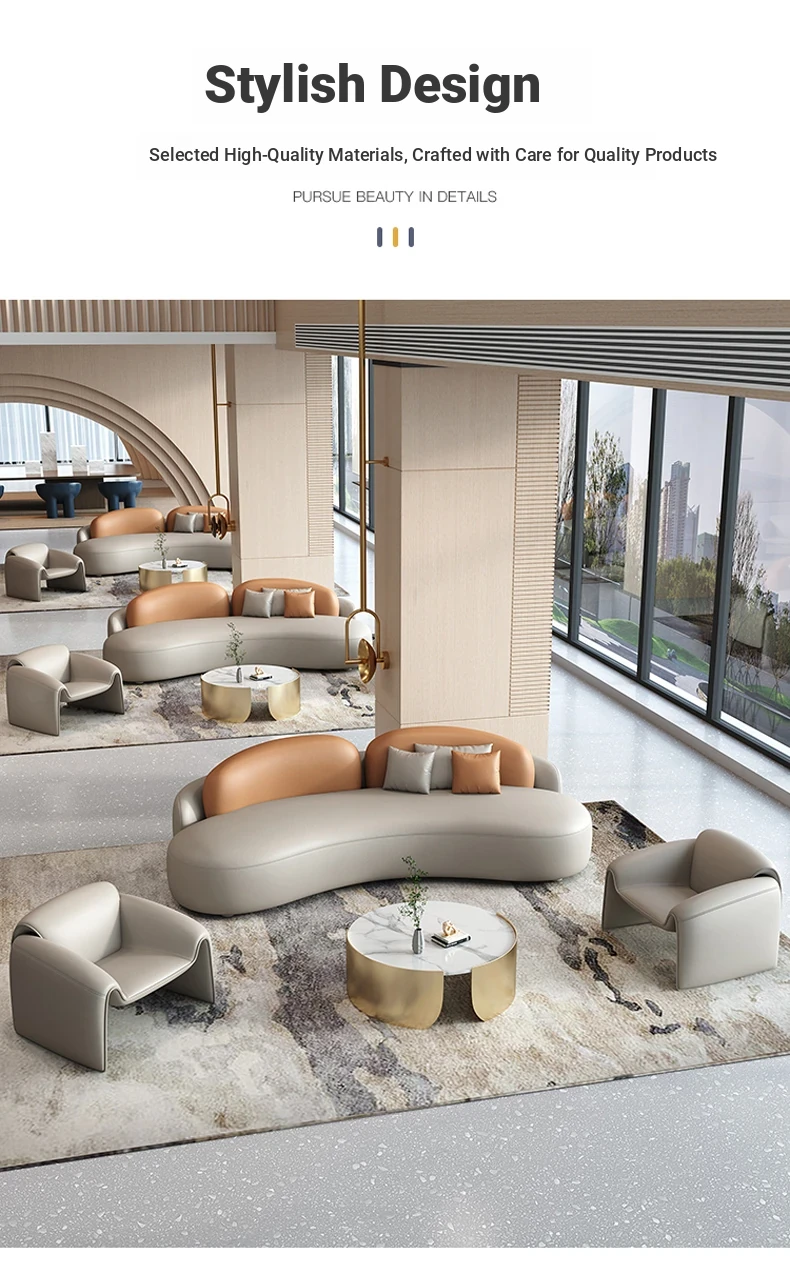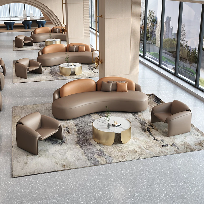 Elegant Reception Area Sofa for Business Hotels - Curved Design for VIP Lounges and Meeting Spaces, Perfect for Client Discussions and Comfortable Gatherings.