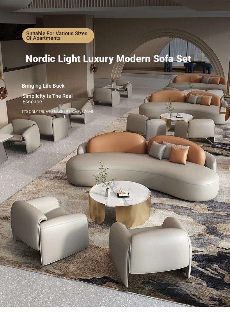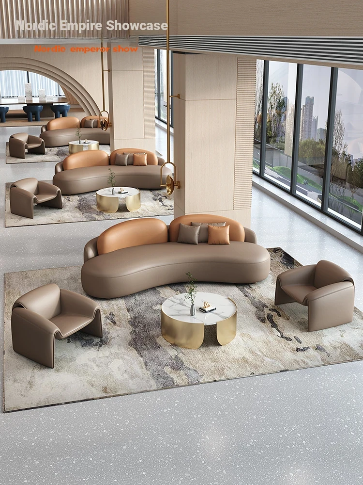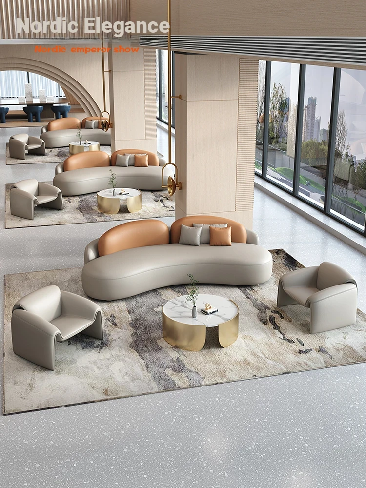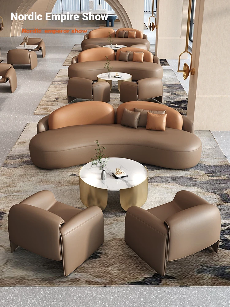 Elegant Reception Area Sofa for Business Hotels - Curved Design for VIP Lounges and Meeting Spaces, Perfect for Client Discussions and Comfortable Gatherings.