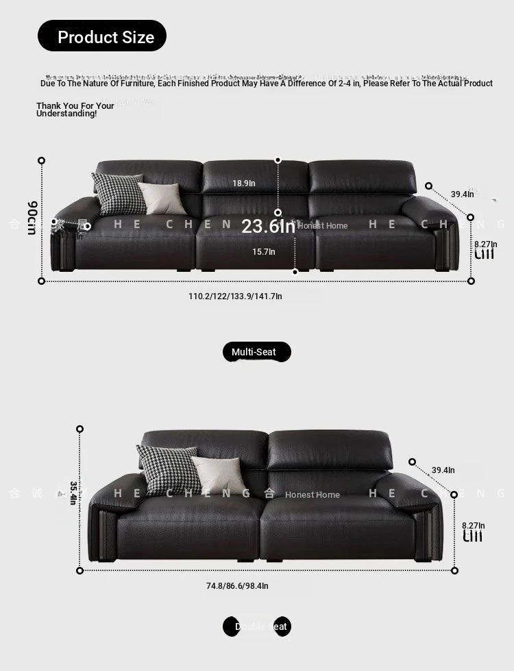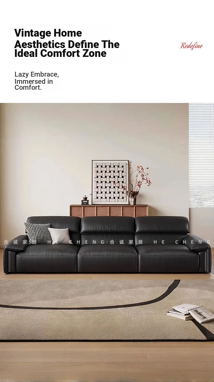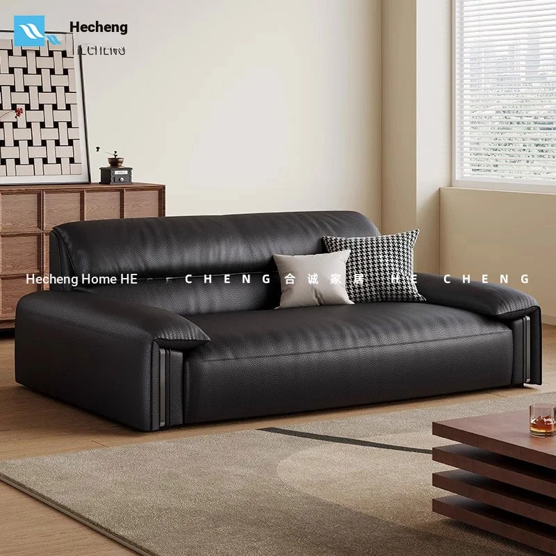 Hecen Home Italian Minimalist Genuine Leather Sofa - Modern Top-Grain Cowhide Sofa for Small Living Rooms and Homes, Perfect for Stylish Comfort