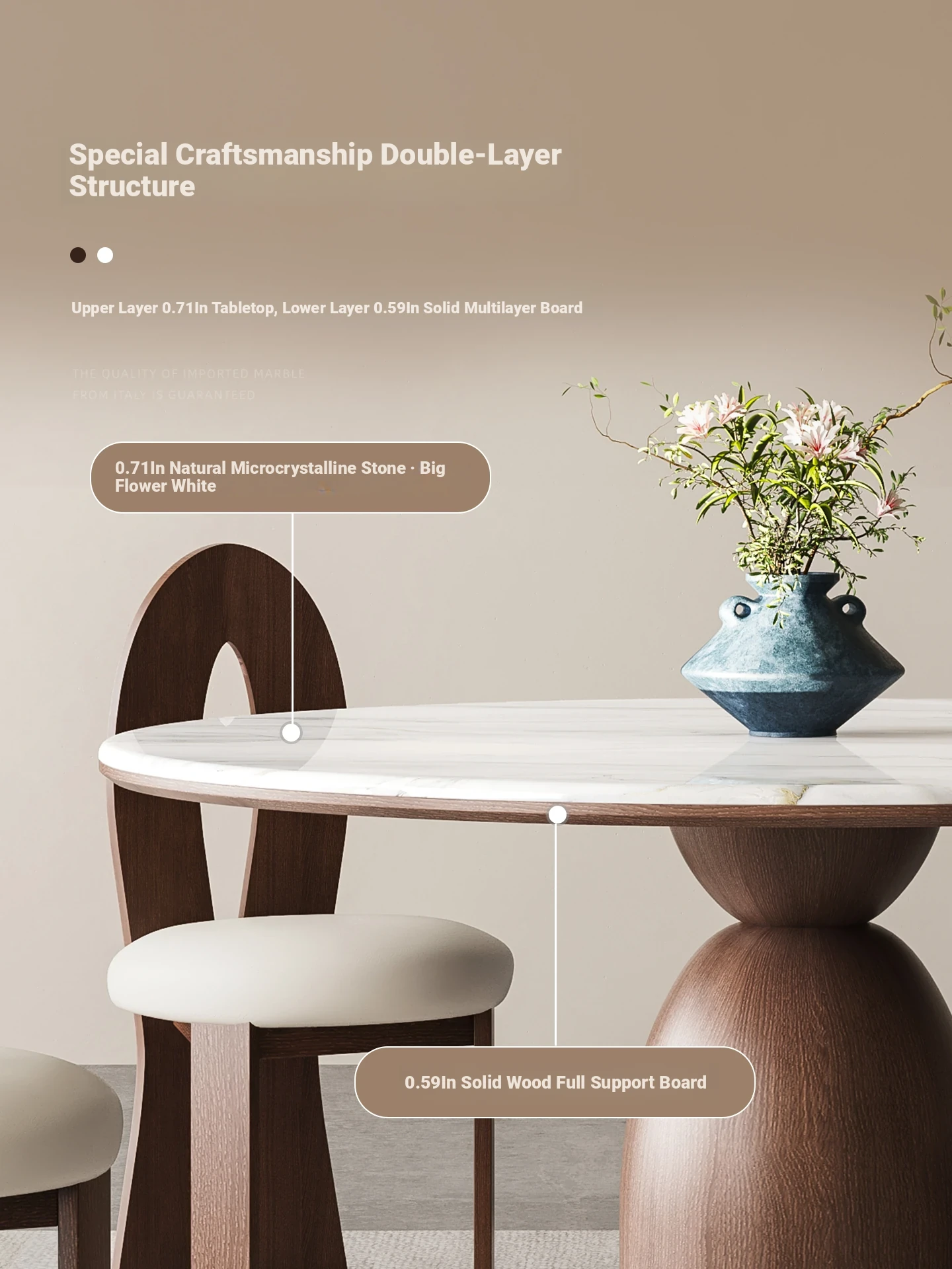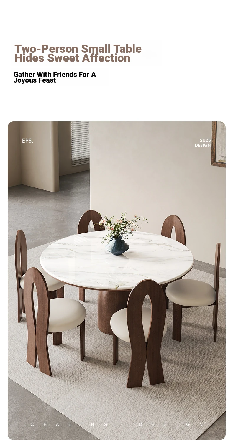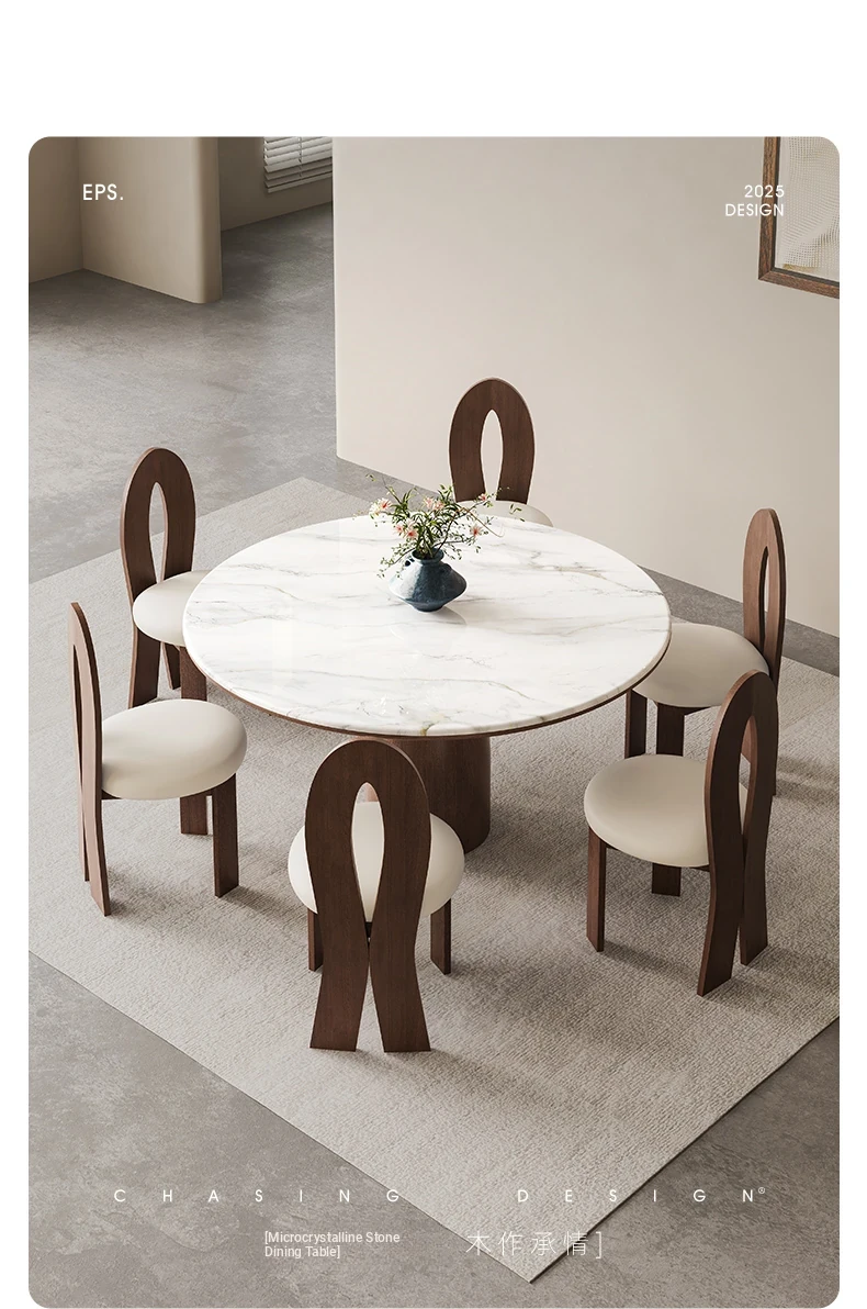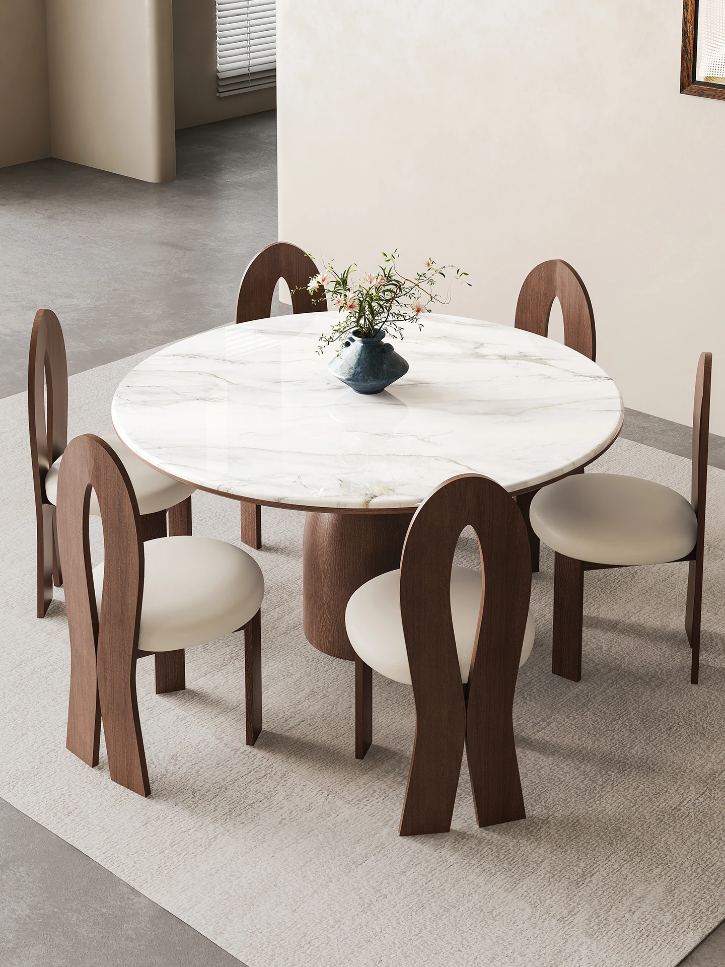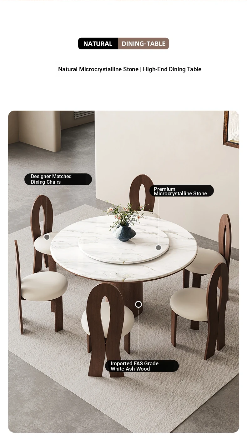High-End Solid Wood Dining Table with Natural Microcrystalline Stone - Round Vintage Style Marble Table and Chair Set for Small Spaces