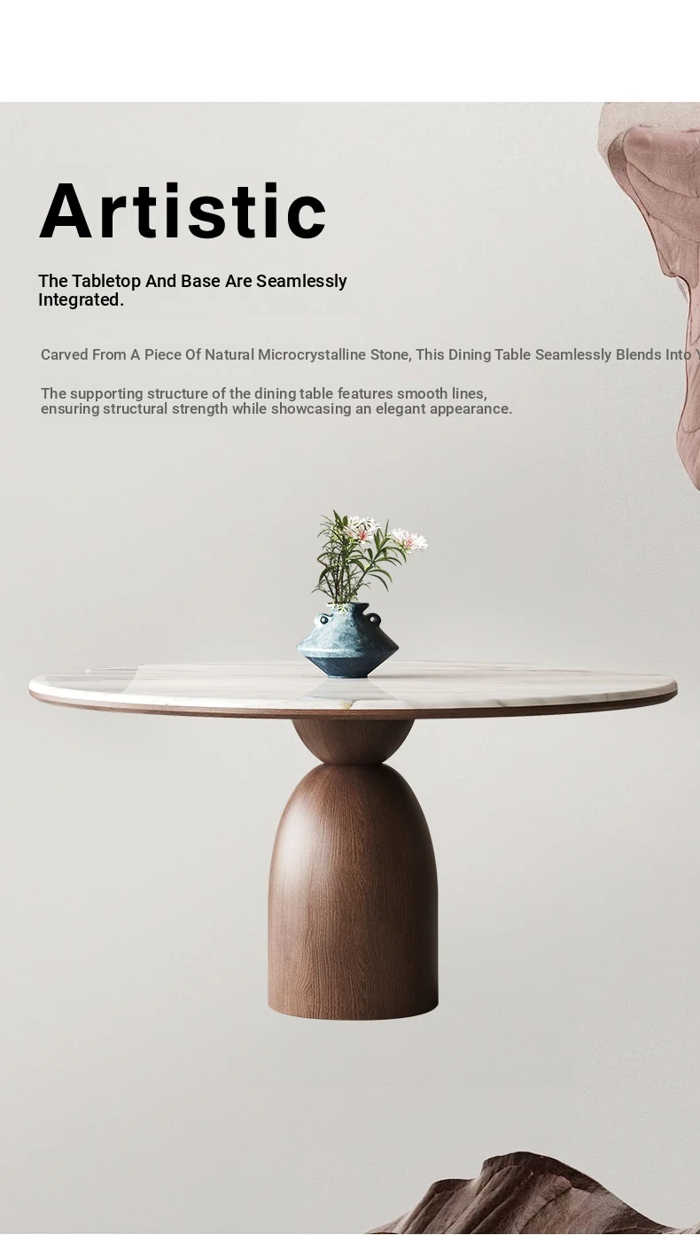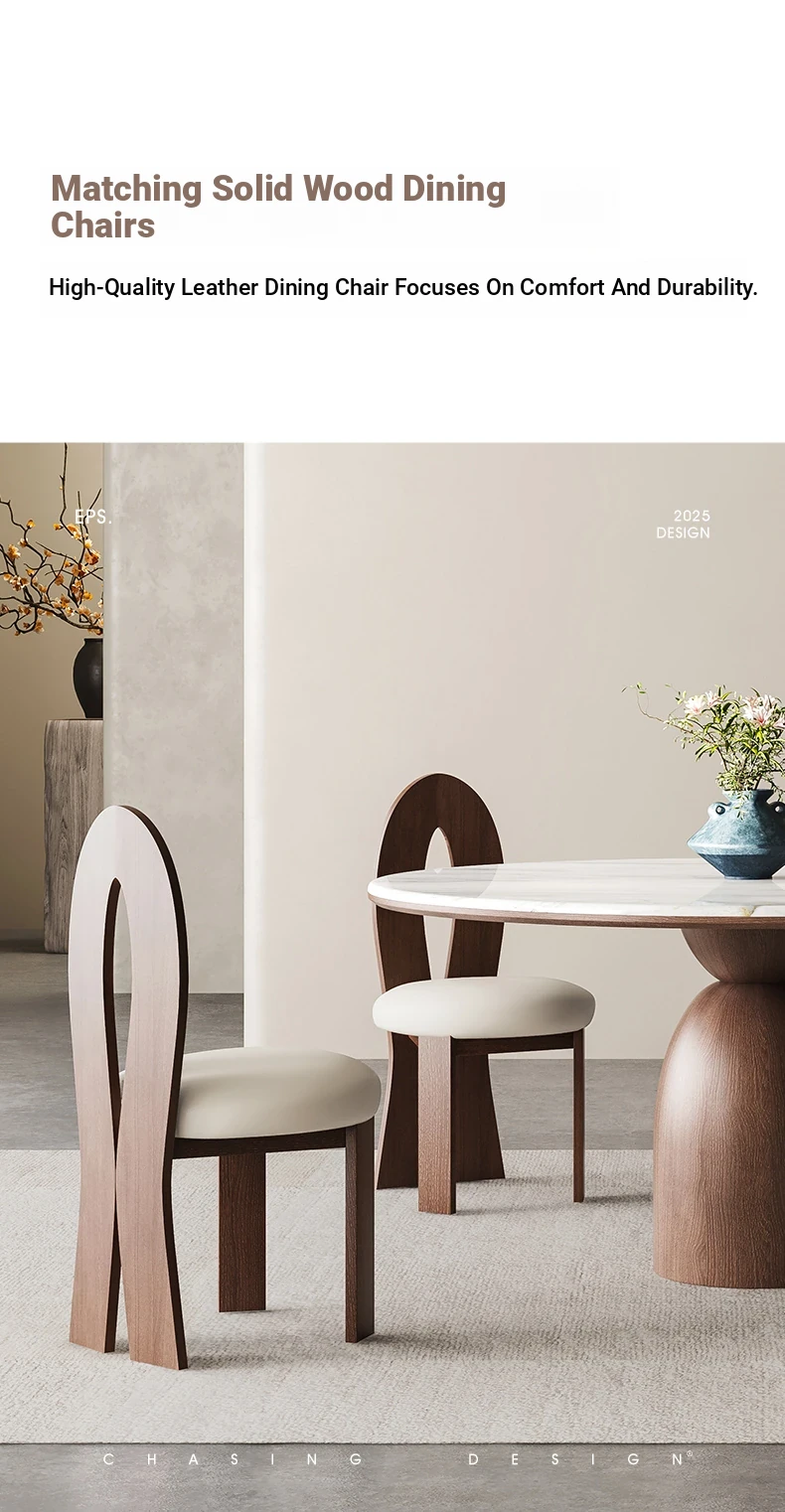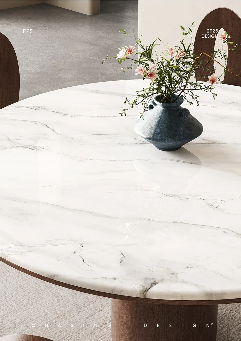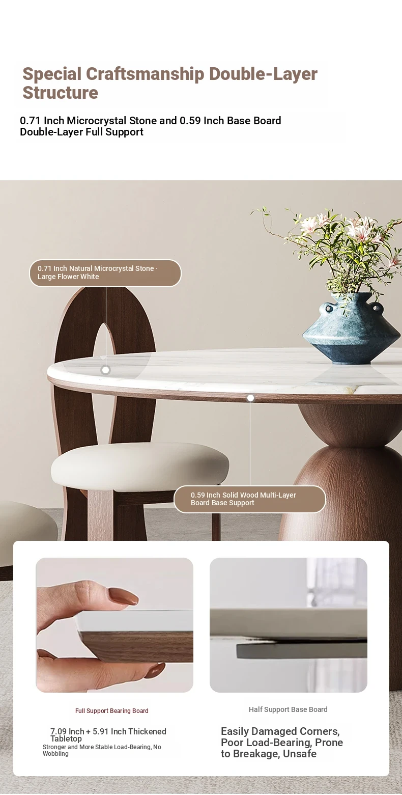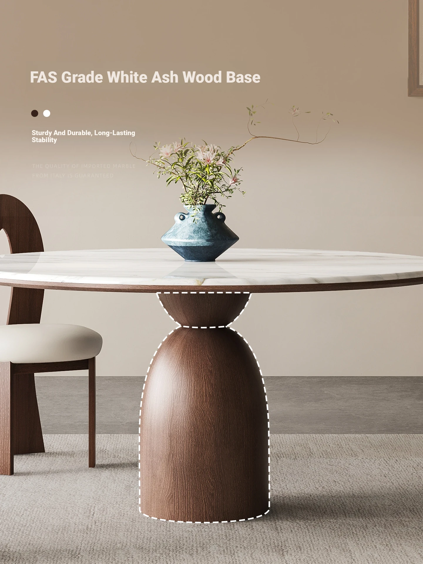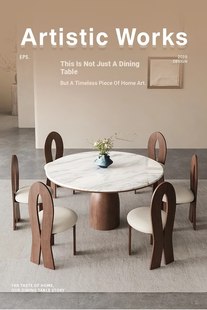 High-End Solid Wood Dining Table with Natural Microcrystalline Stone - Round Vintage Style Marble Table and Chair Set for Small Spaces