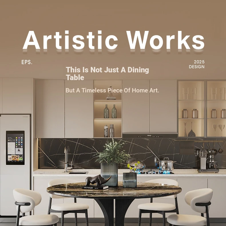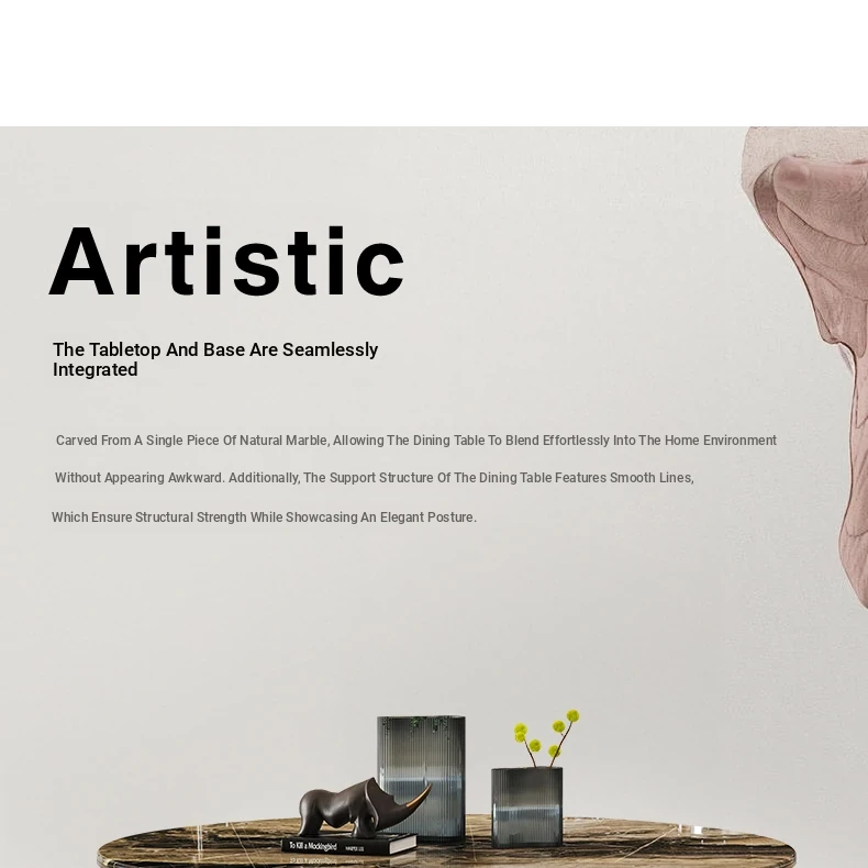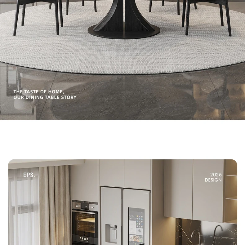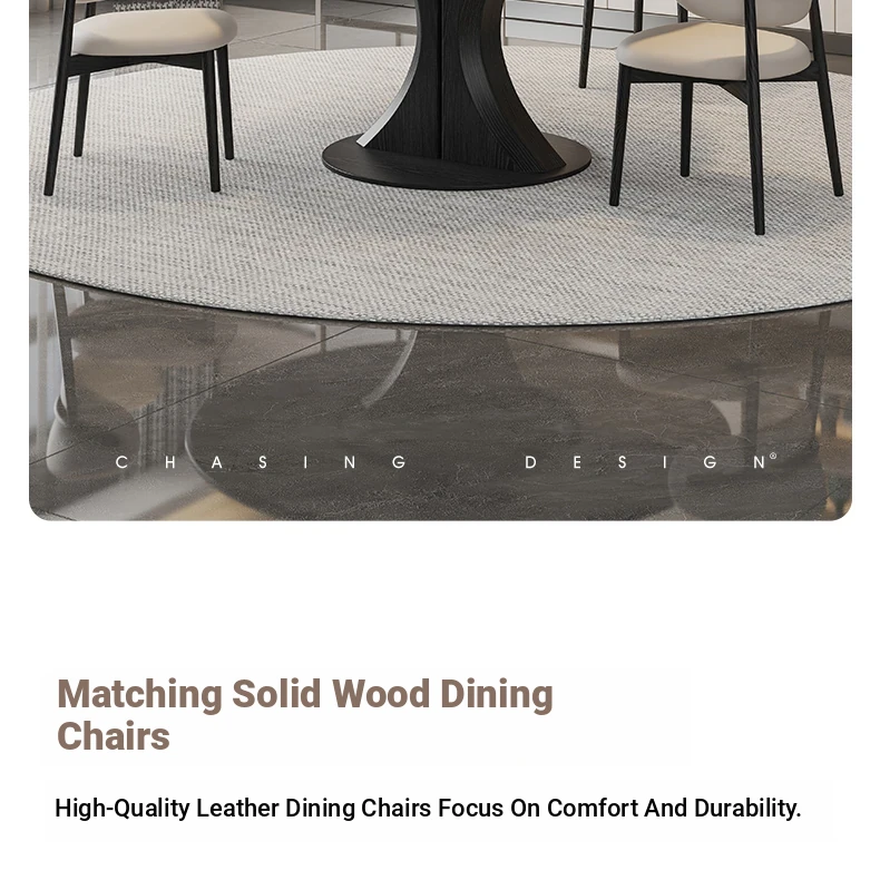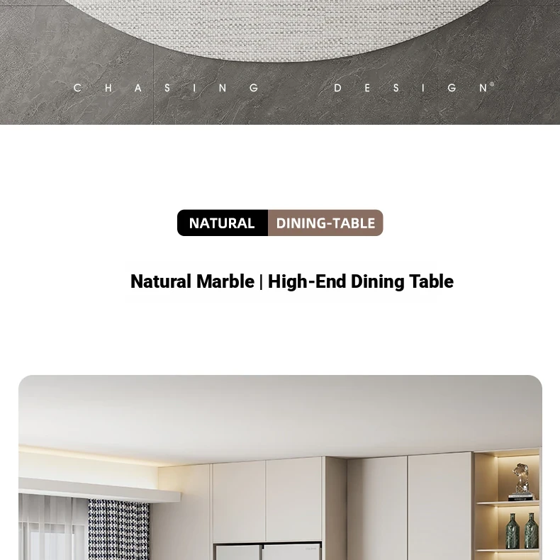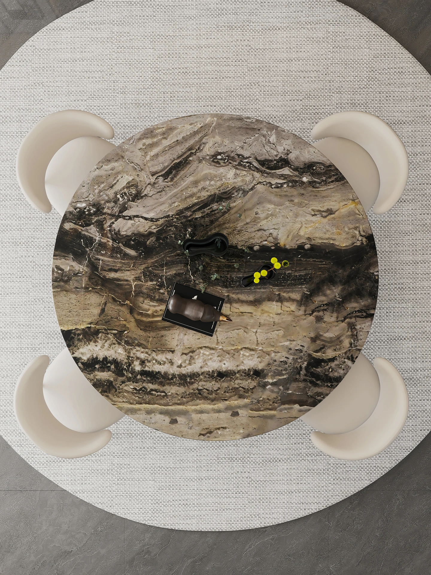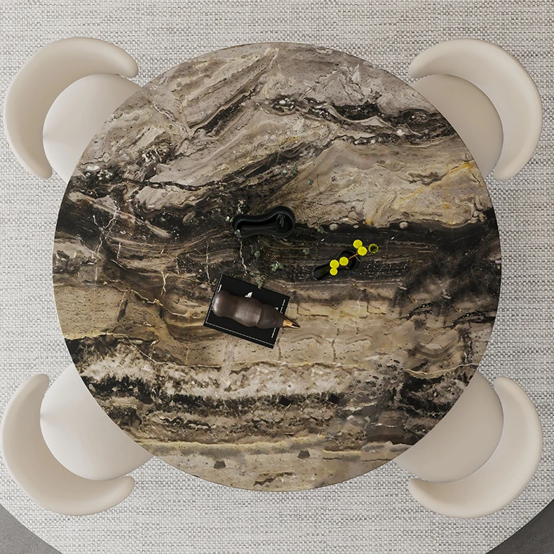 High-End Vintage Style Round Dining Table with Marble Veneer and Solid Wood Base – Elegant Circular Table for Home Living Room, Featuring a Convenient Rotating Turntable