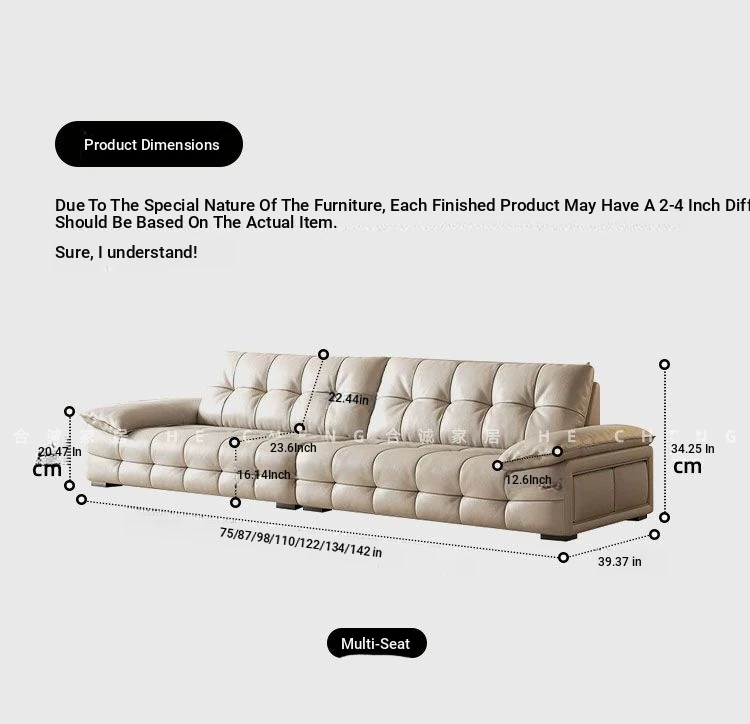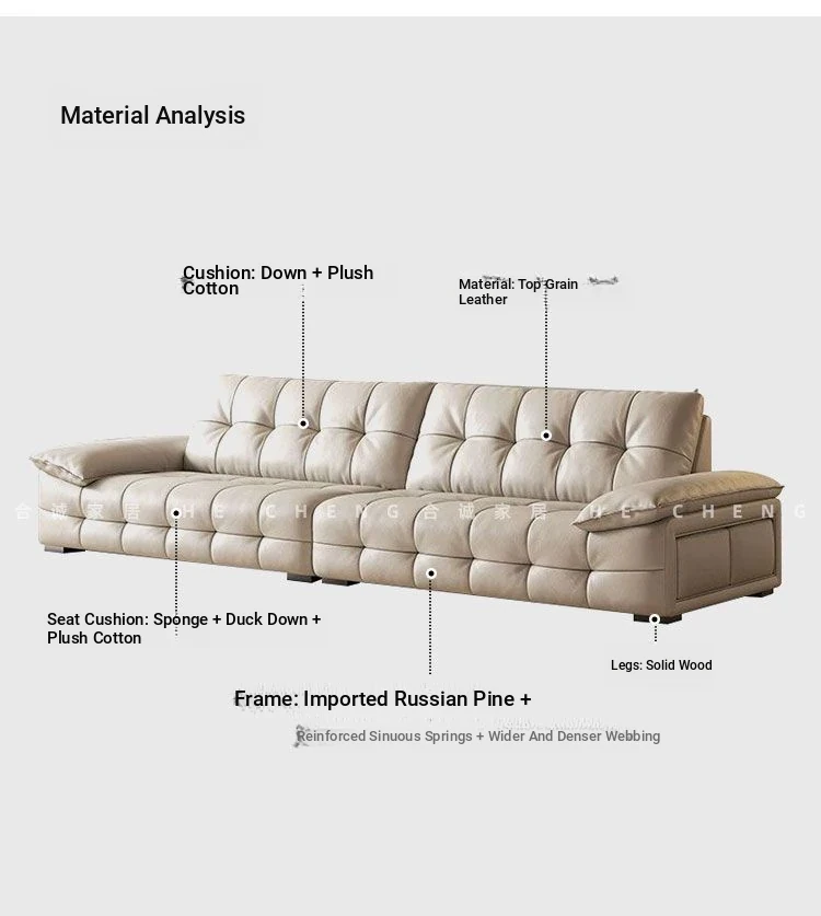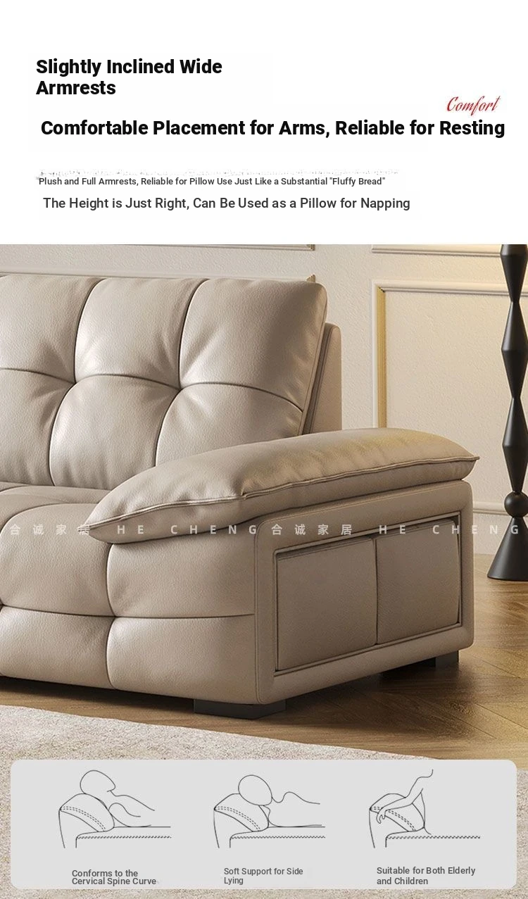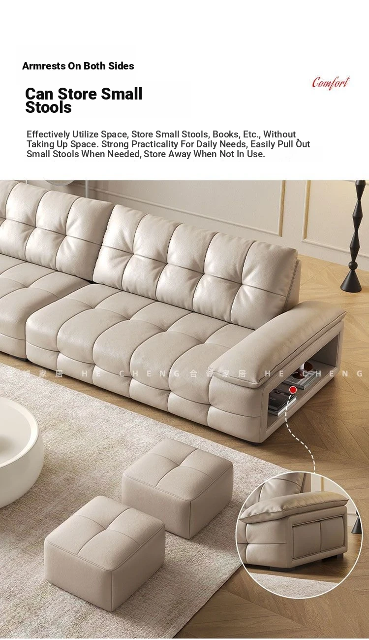 Hocheng Leather Sofa - Lawrence Italian Minimalist Design for Small Spaces, Made with Top Grain Leather and Featuring Storage Solutions
