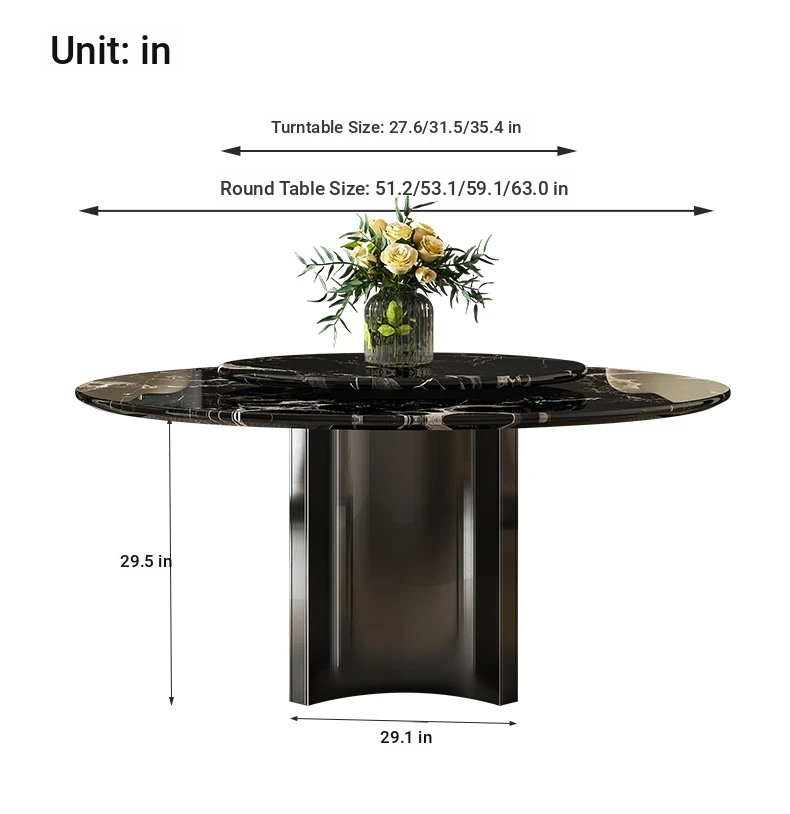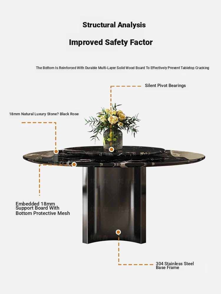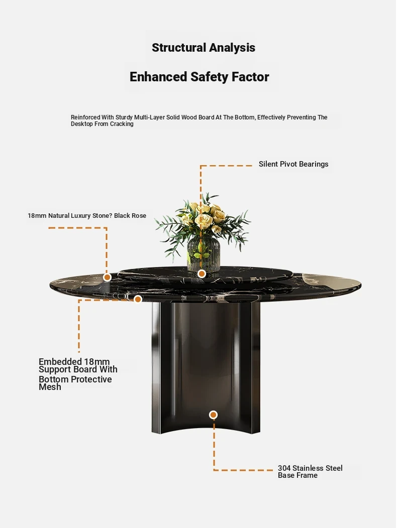 [Upgrade Composite Full Support] Crystal Black Natural Microcrystalline Round Table + Turntable