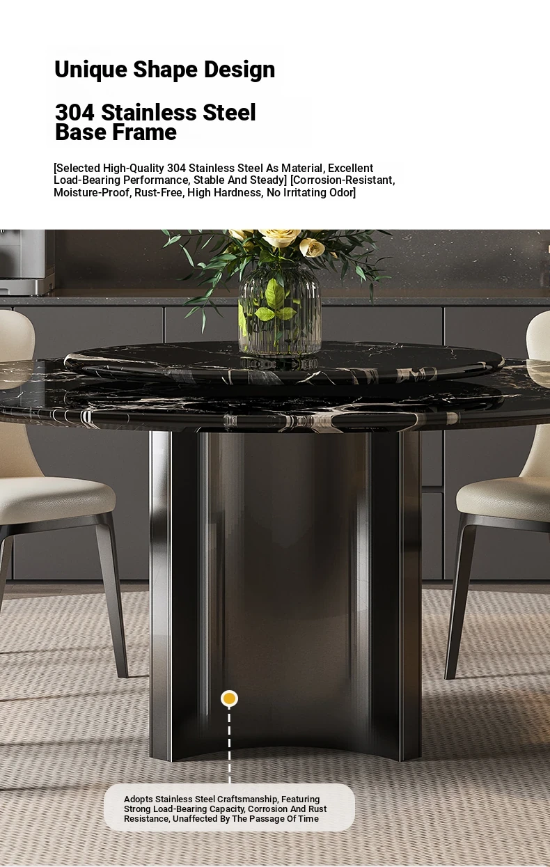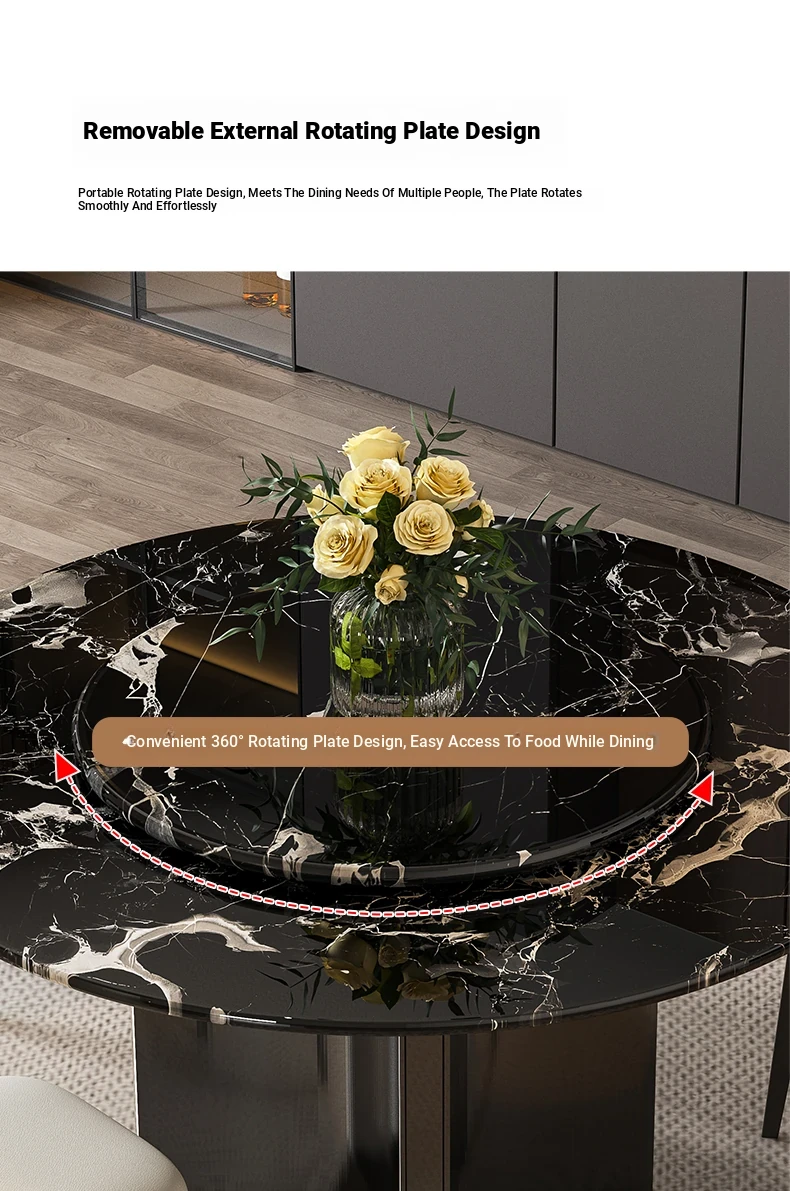 [Upgrade Composite Full Support] Crystal Black Natural Microcrystalline Round Table + Rotating Plate + Cat-Crapping Chair*6