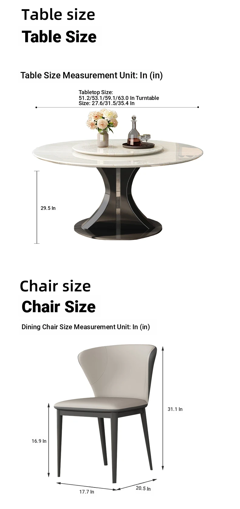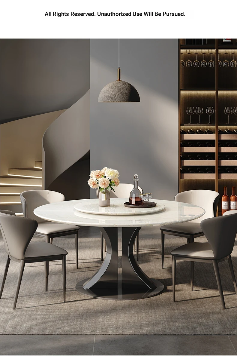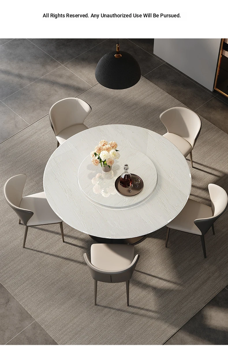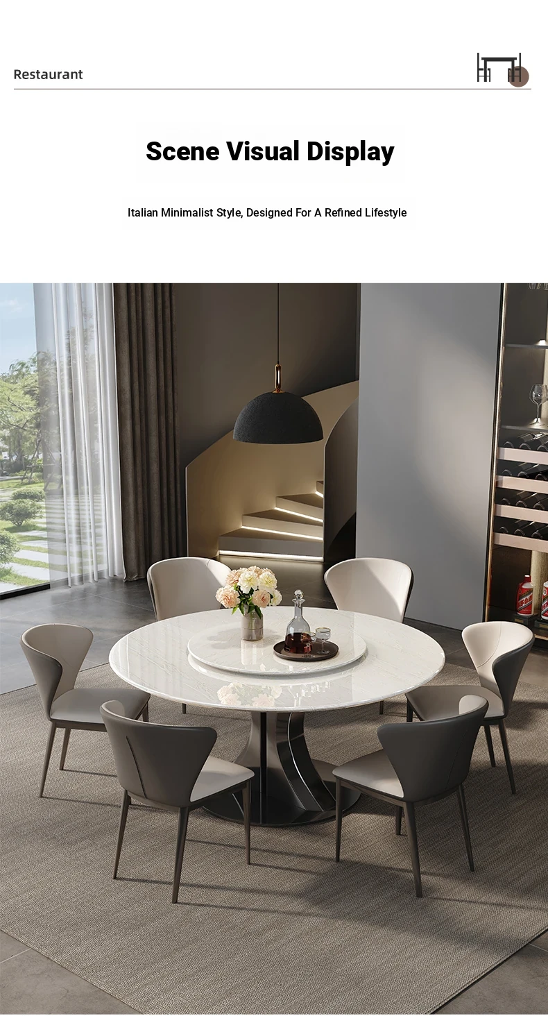 [Import] Class S Kari Icestone Natural Luxury Stone Round Dining Table + Turntable + Leather Dining Chair * 6