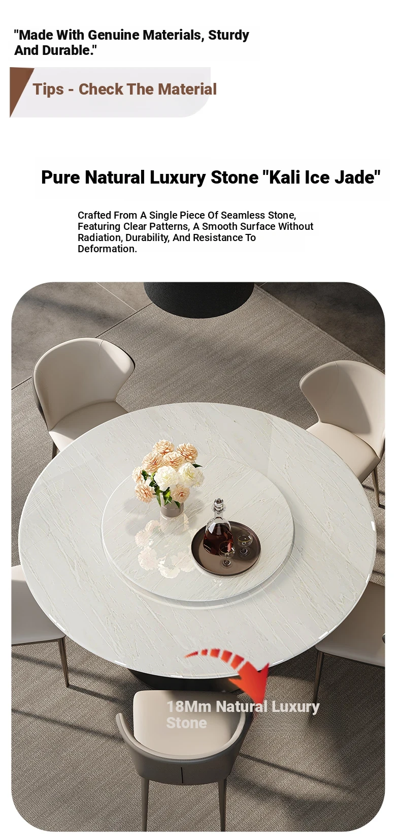 [Import] S-Class Cary Icejade Natural Luxury Stone Round Dining Table + Turntable