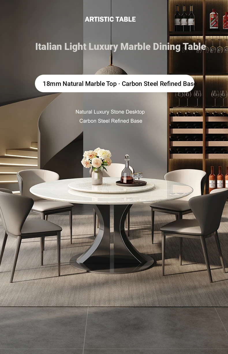 Imported Calacatta Marble Round Dining Table - Luxurious Italian Natural Stone Design for an Elegant Dining Experience - Premium Quality Round Table