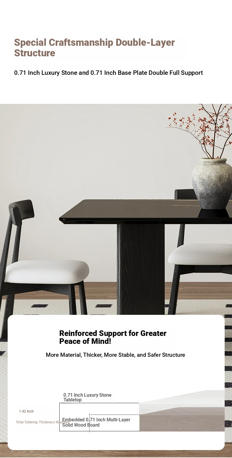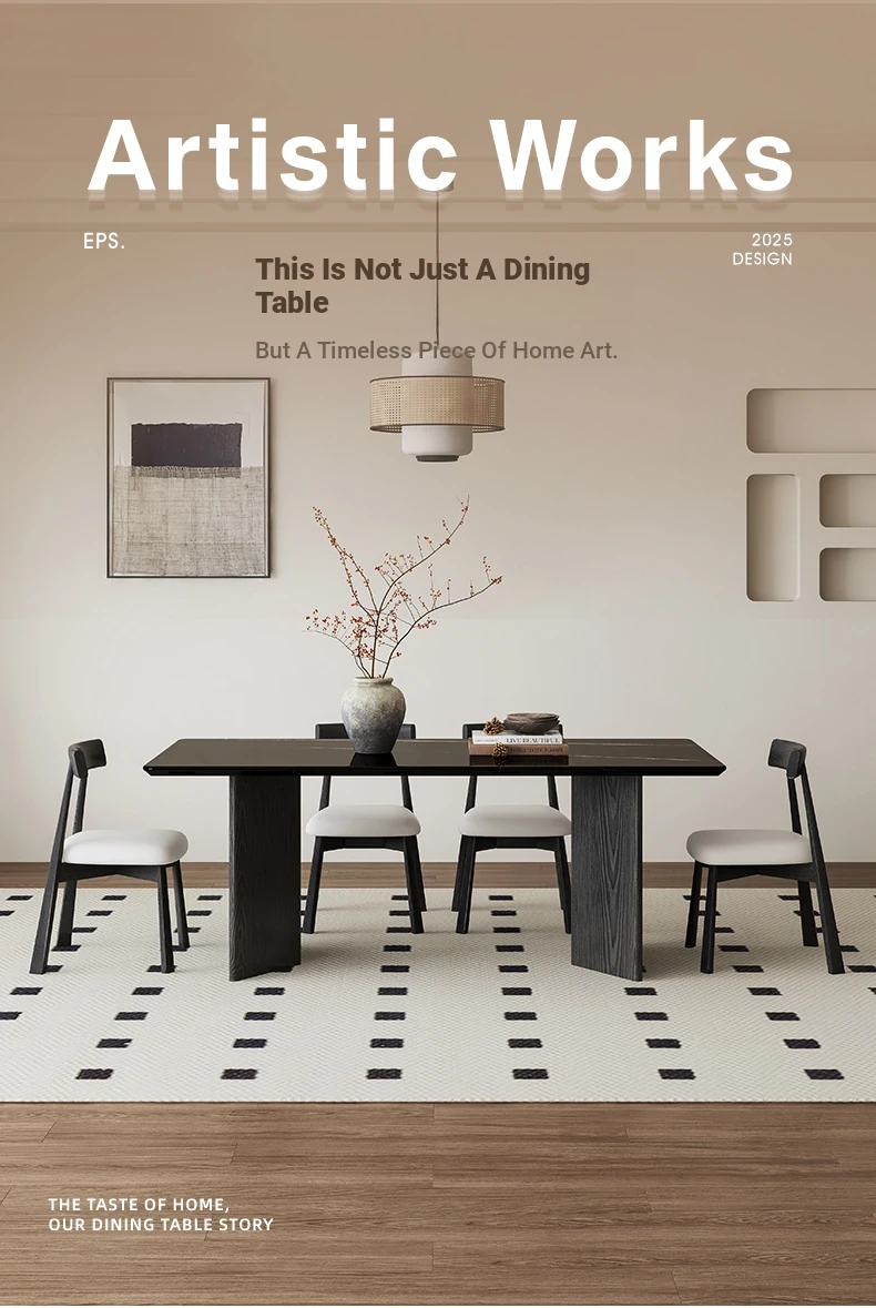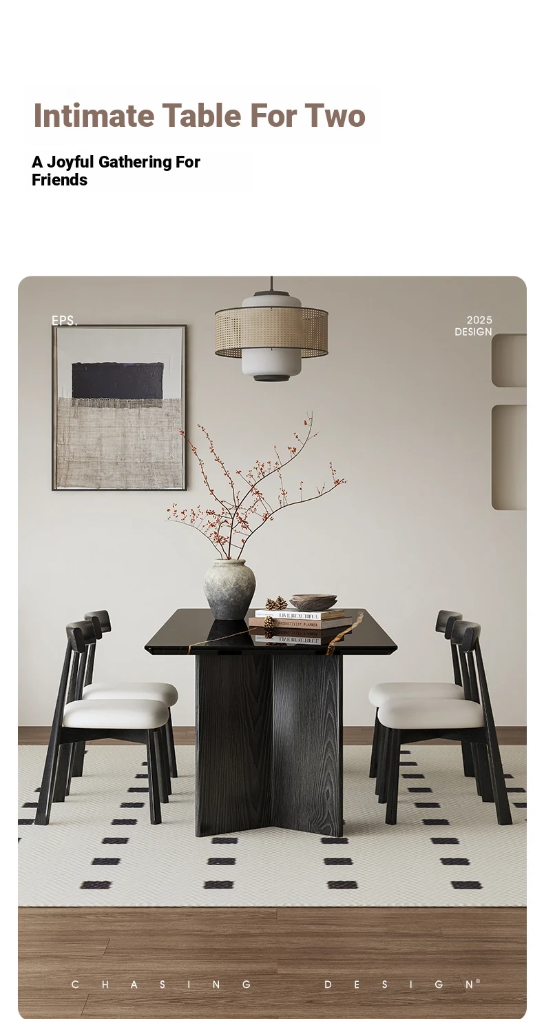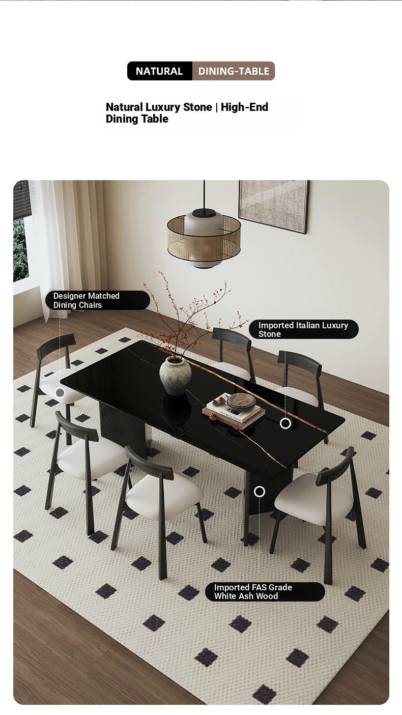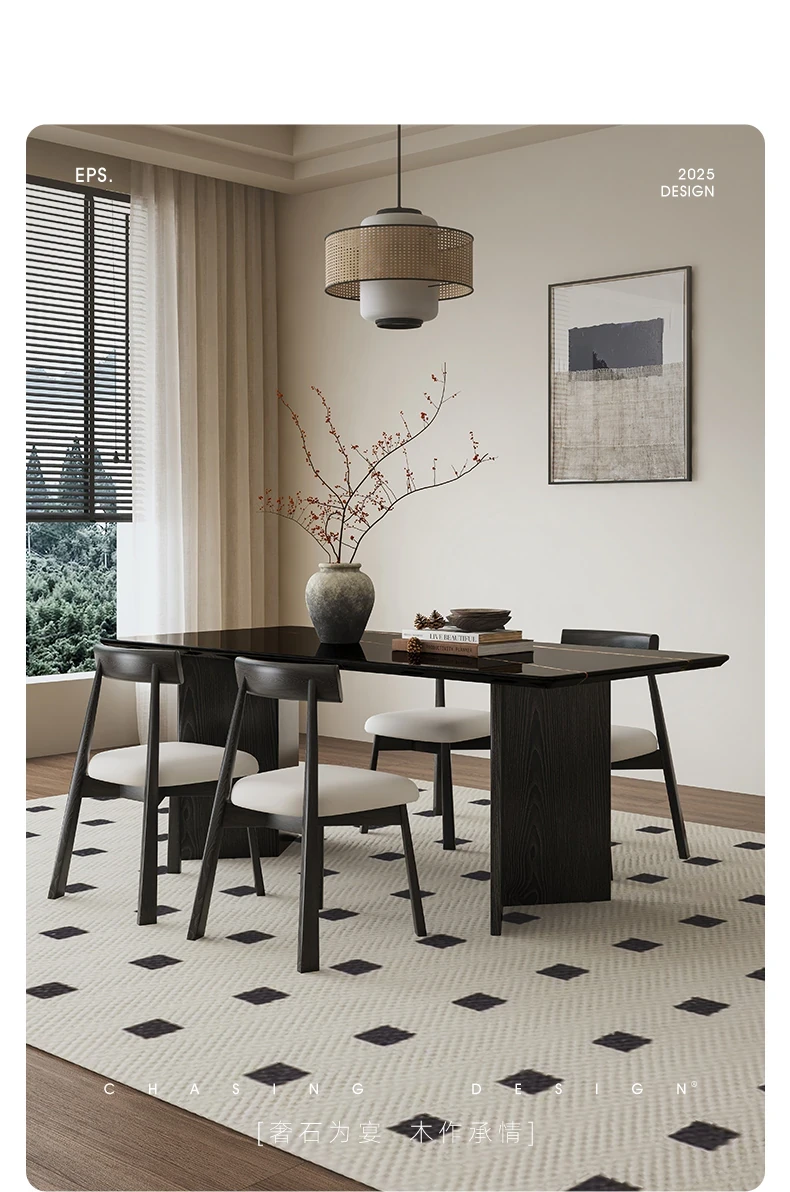 Lauren Black Gold Luxury Stone Dining Table with Solid Wood Long Table, Light Luxury Vintage Retro Style, Imported Natural Marble Dining Chair Set